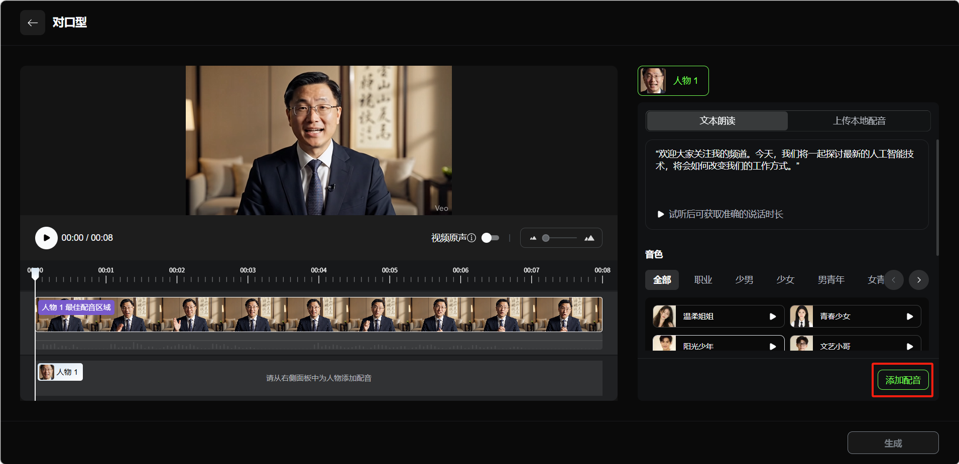 点击「添加配音」按钮。