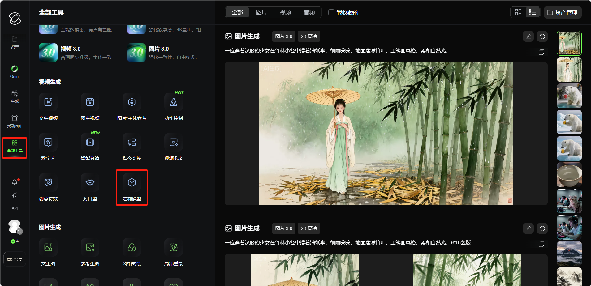 点击左侧导航的「全部工具」,选择「定制模型」。