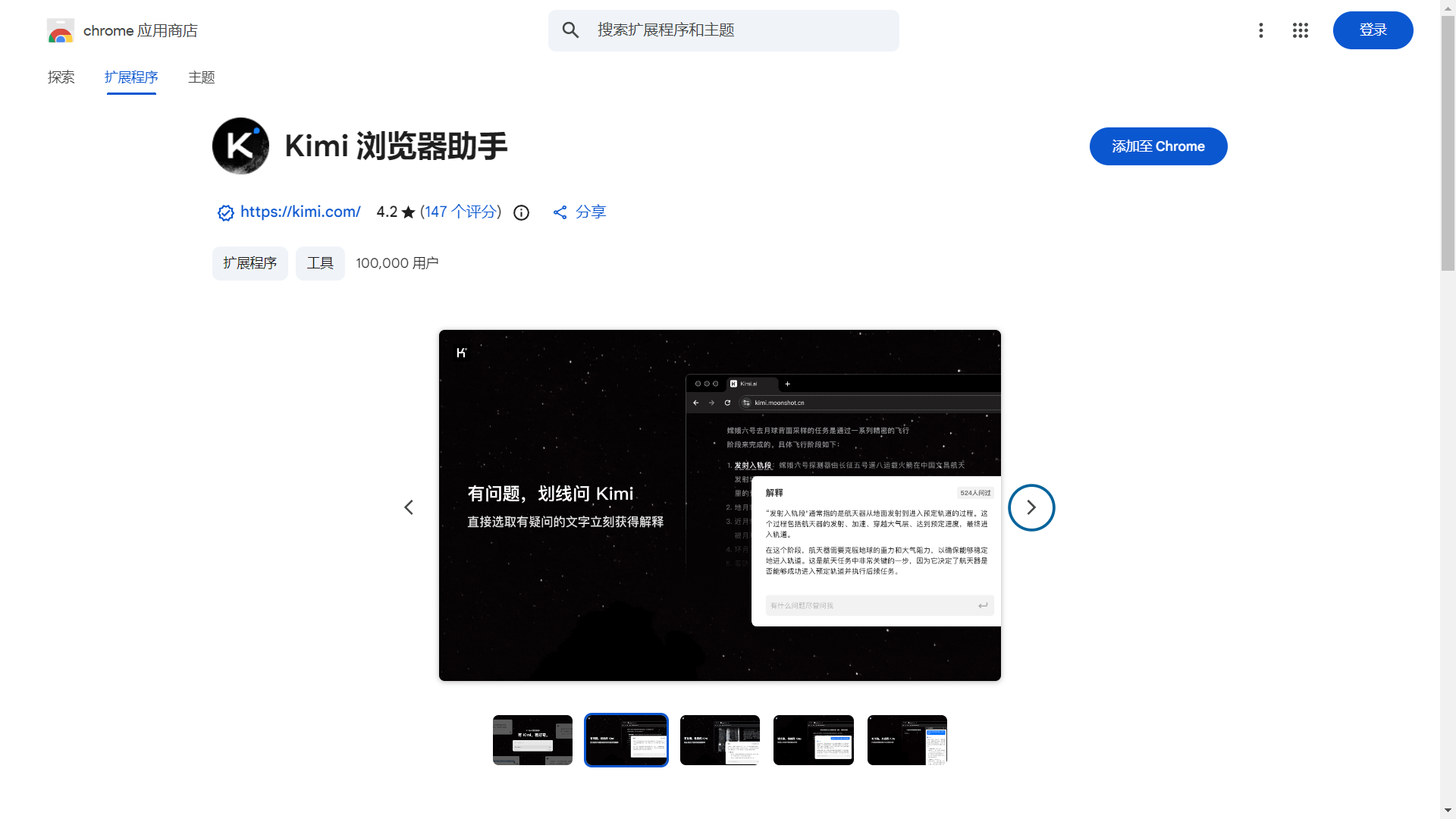 Kimi 提供适用于 Chrome 内核浏览器的官方插件,可通过以下地址获取并安装: