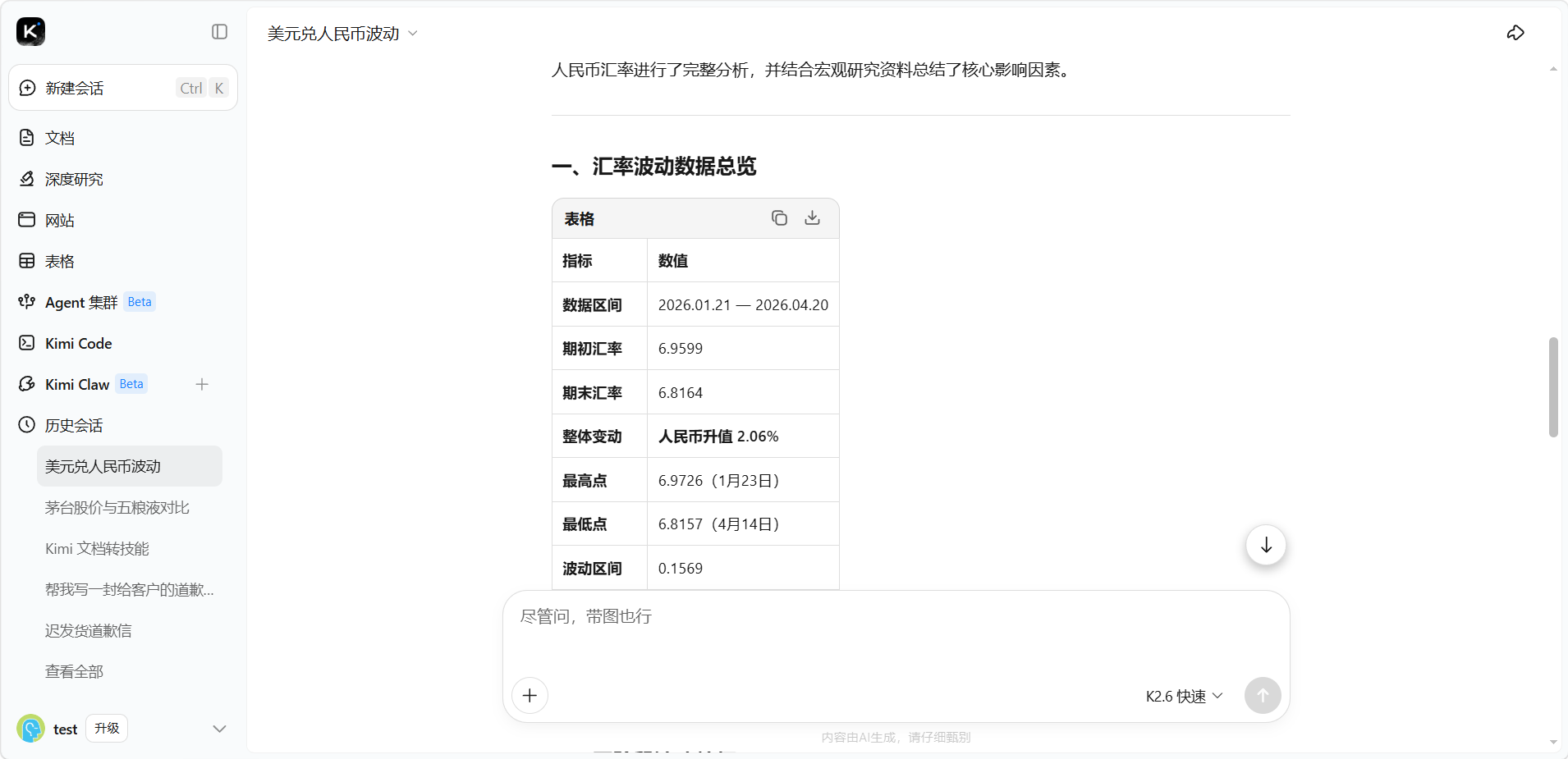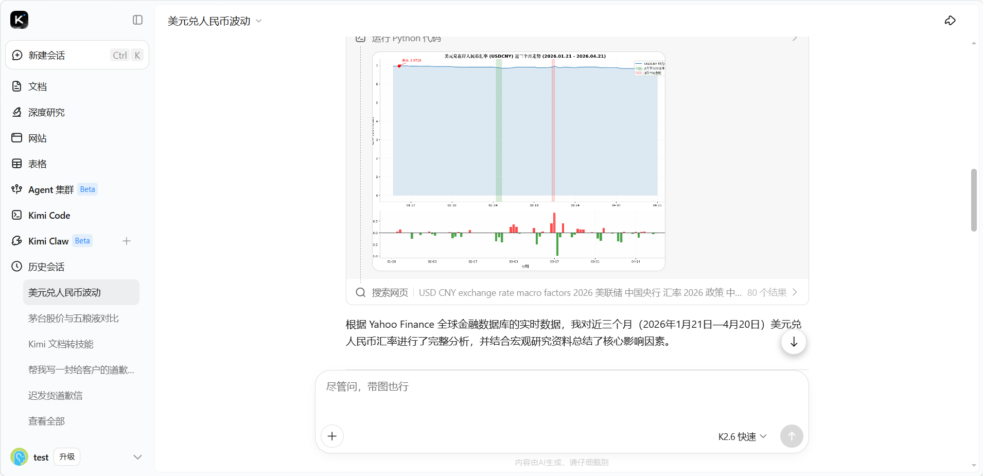 - 善用交叉分析:你可以要求 Kimi 结合不同数据库的信息,例如“结合天眼查和金融数据库,帮我分析这家公司的股权结构和近半年的股价波动是否有异常”。