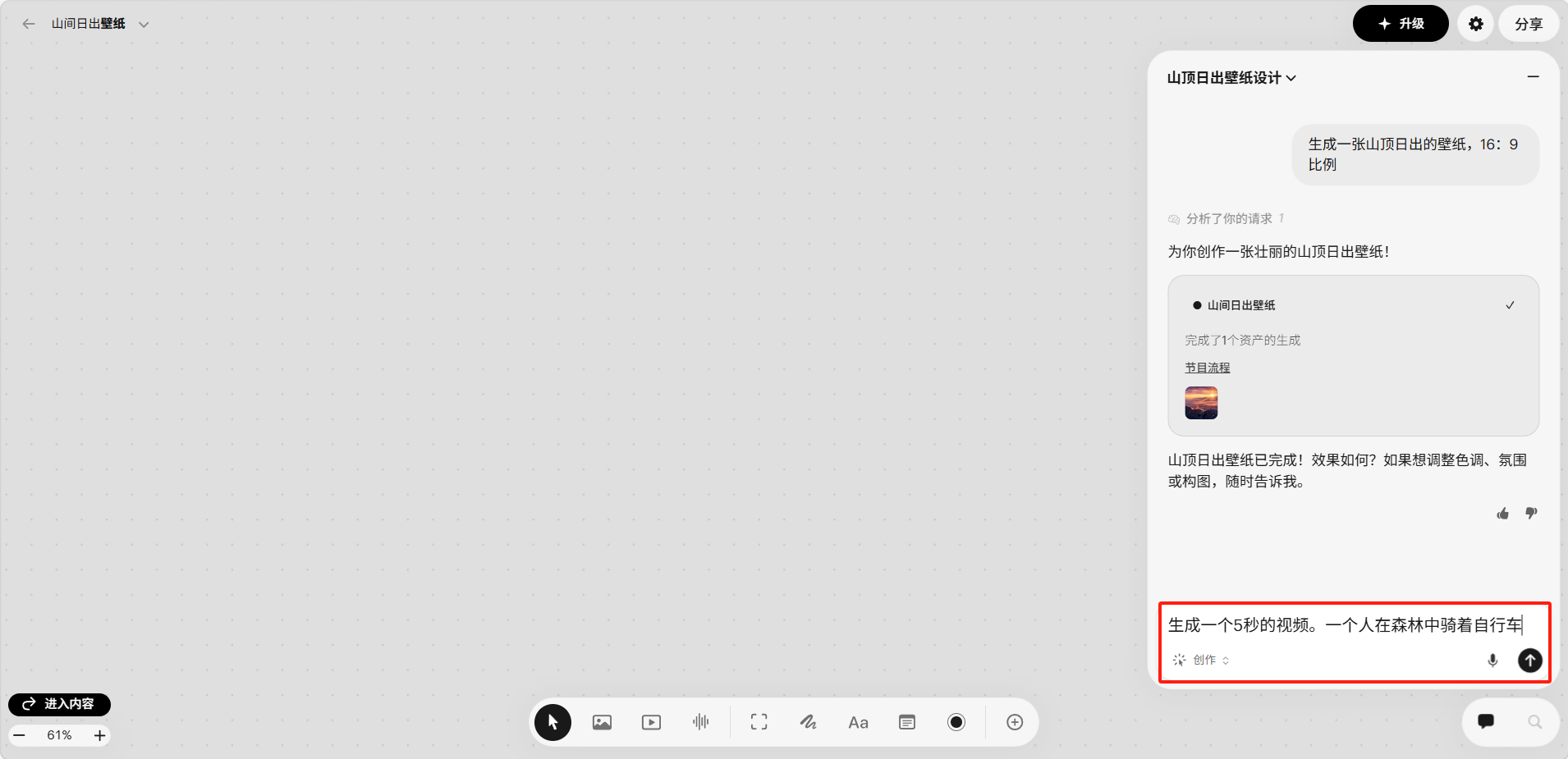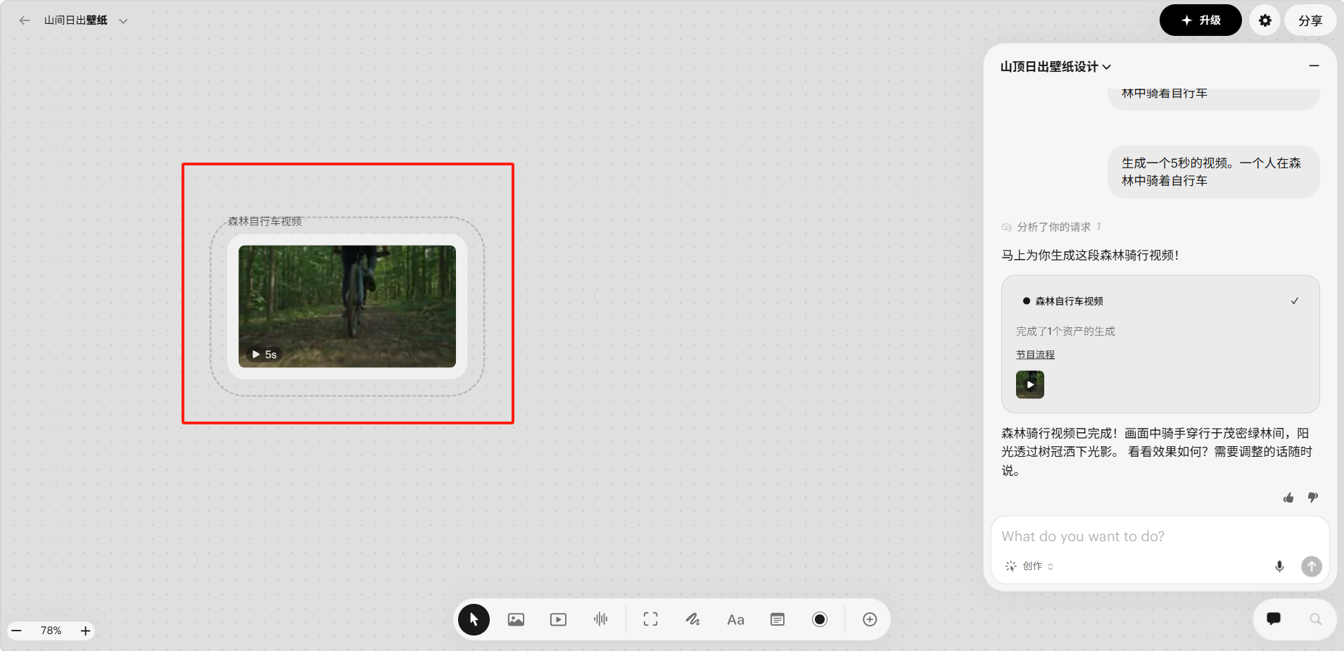 生成完成后,视频会出现在画板上,可直接预览播放。