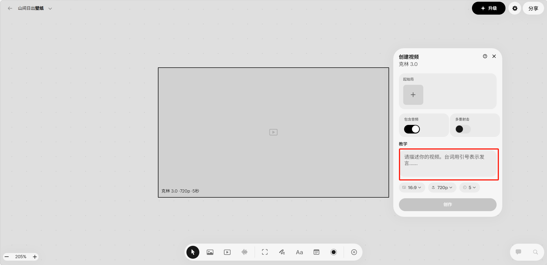 在弹窗中输入视频描述并生成。