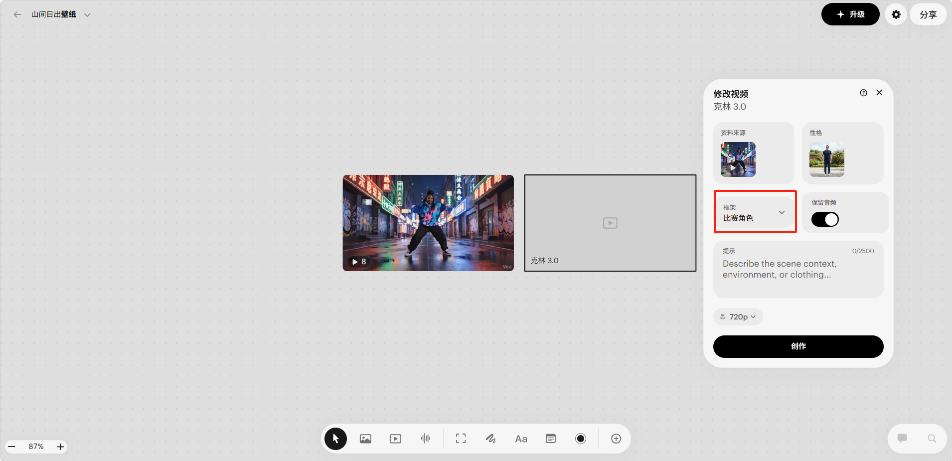 - Match Video(匹配视频):构图以原始视频为准,保持原视频的镜头角度和画面比例