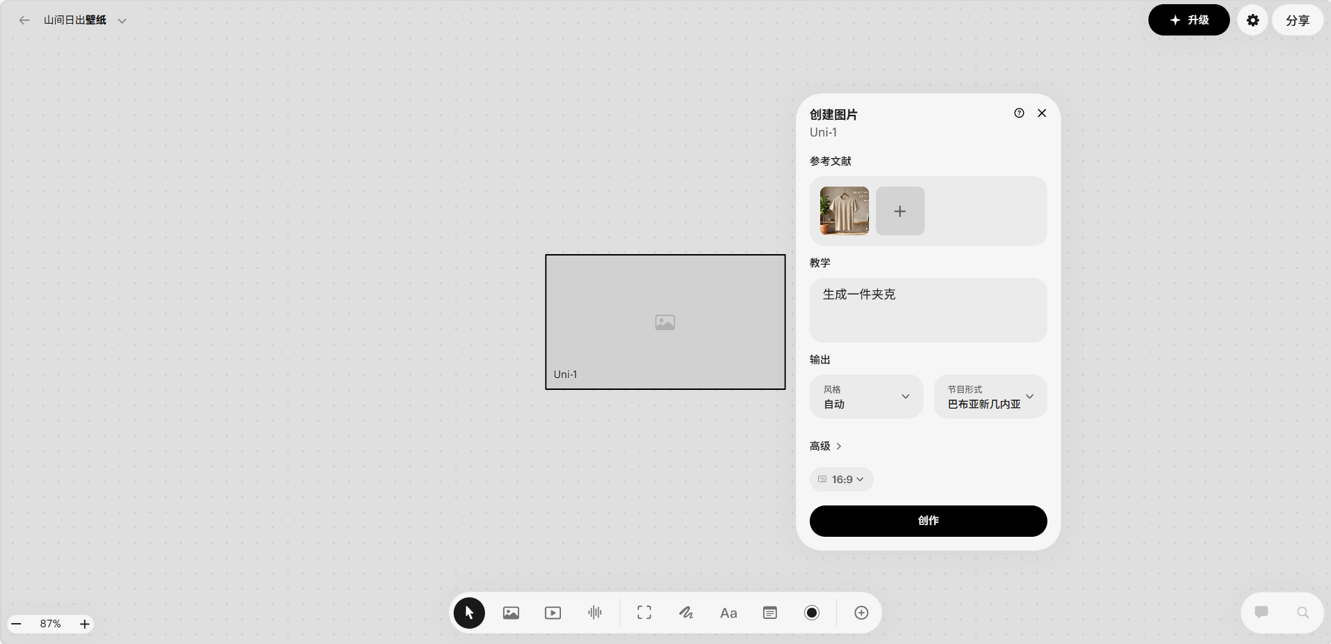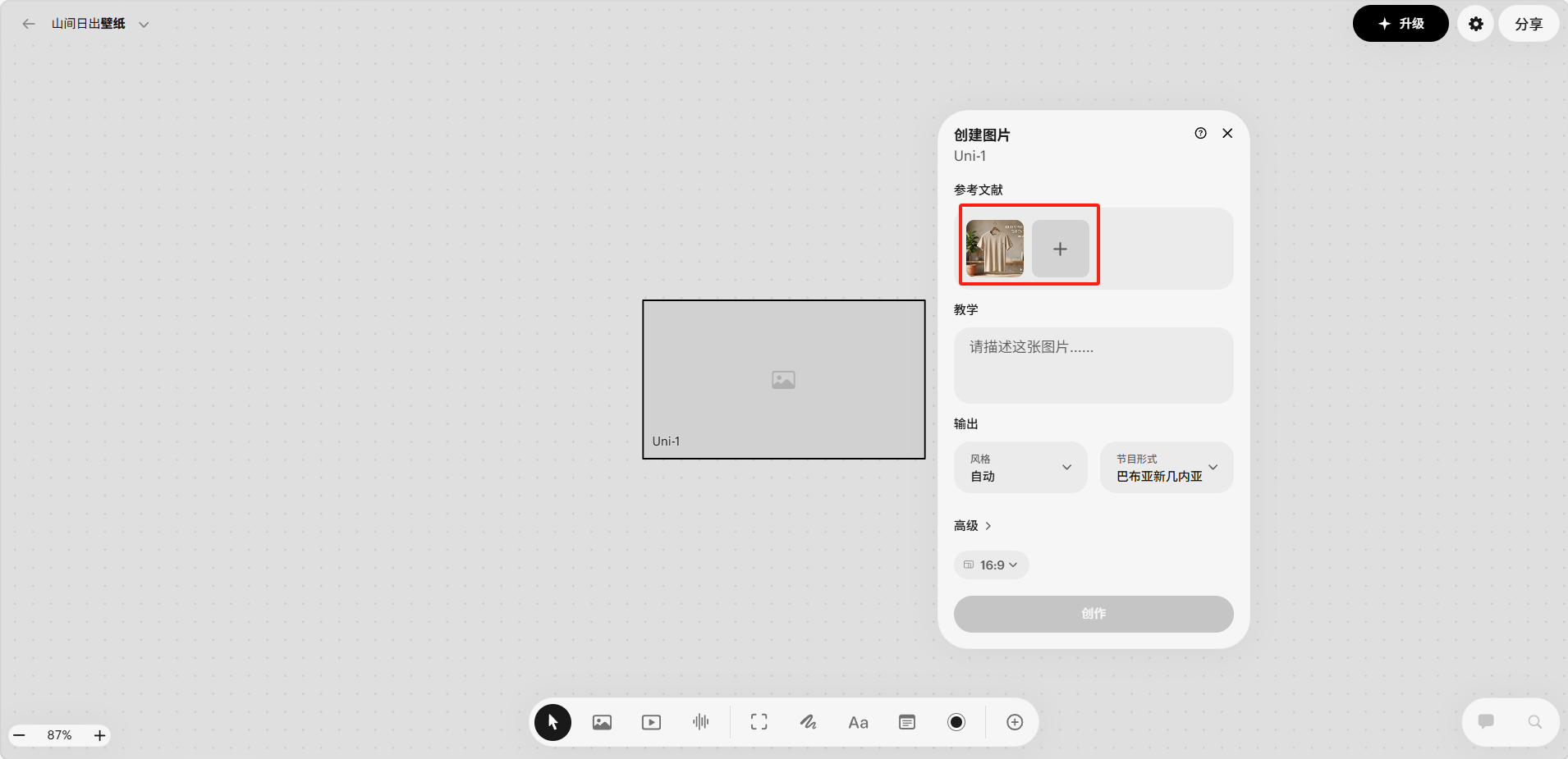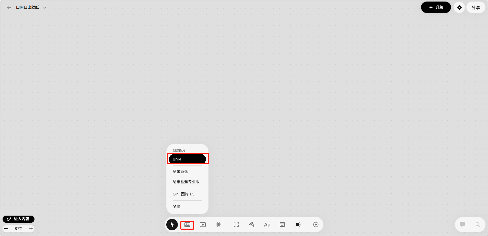 点击下方工具栏中的图片工具,选择「Uni-1 」模型。