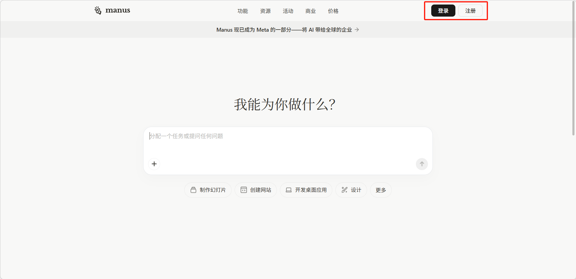 在浏览器中打开 https://manus.im