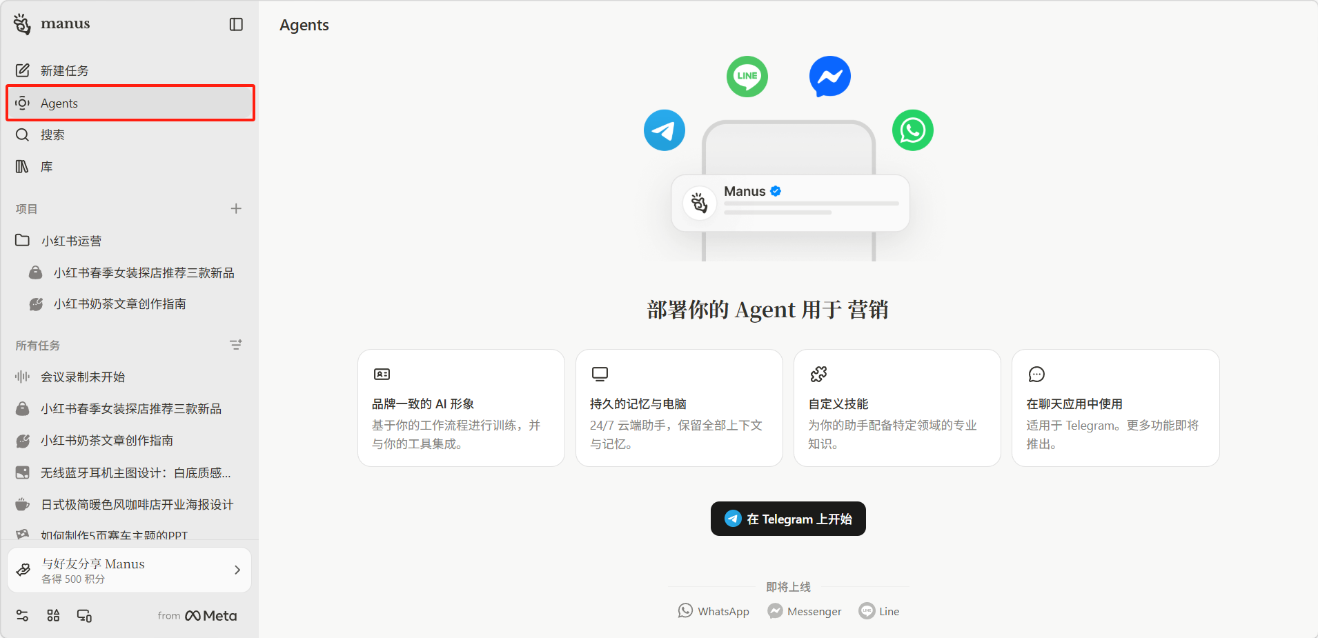 - 多渠道部署:目前支持 Telegram,WhatsApp、Messenger、Line 等平台即将上线