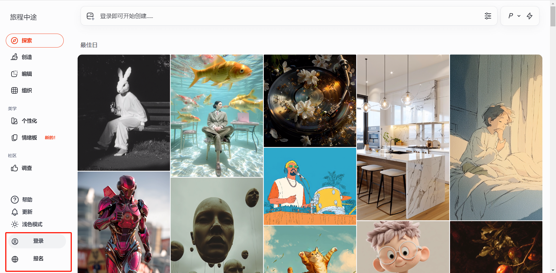 💡 提示:如果还没有 Discord 账号,建议先到 https://discord.com 注册一个,因为 Discord 端拥有一些网页端不具备的功能,同时也是 Midjourney 社区交流的主要平台。
