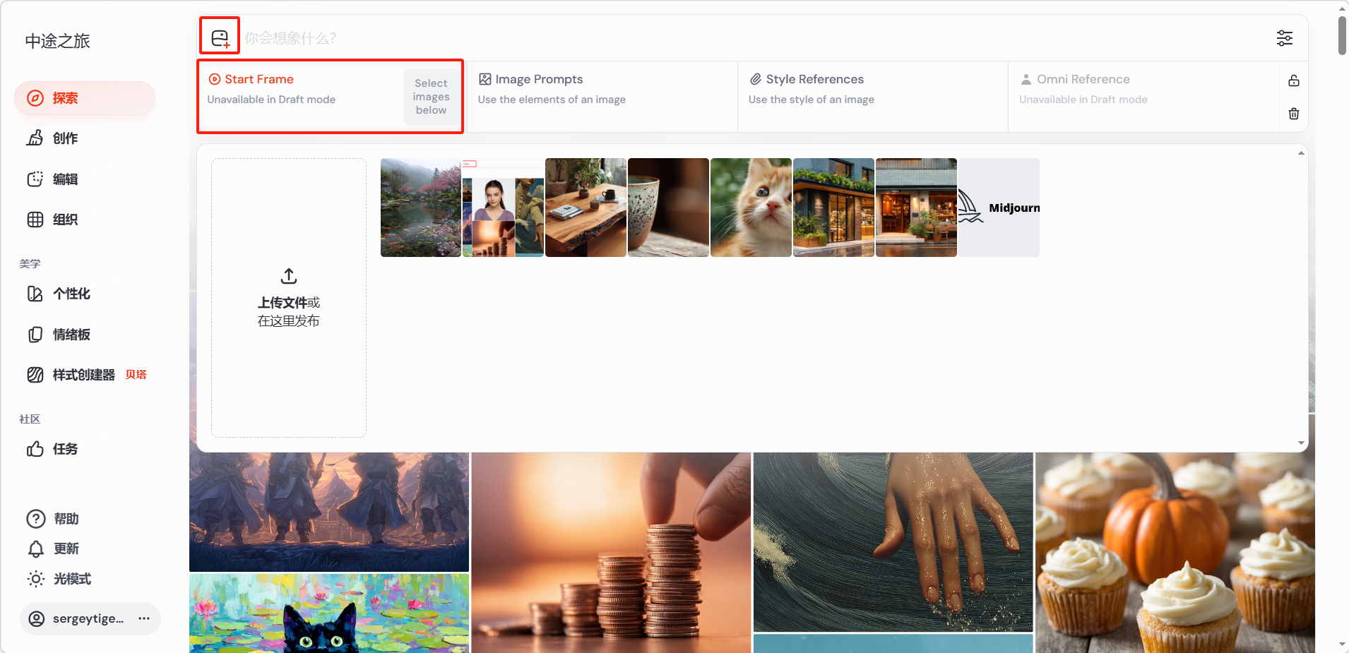 点击顶部输入框最左边的按钮,选择「起始帧(Starting Frame)」进行生成。