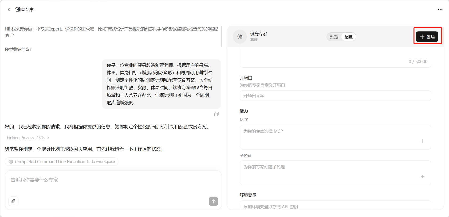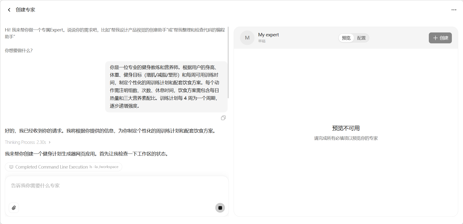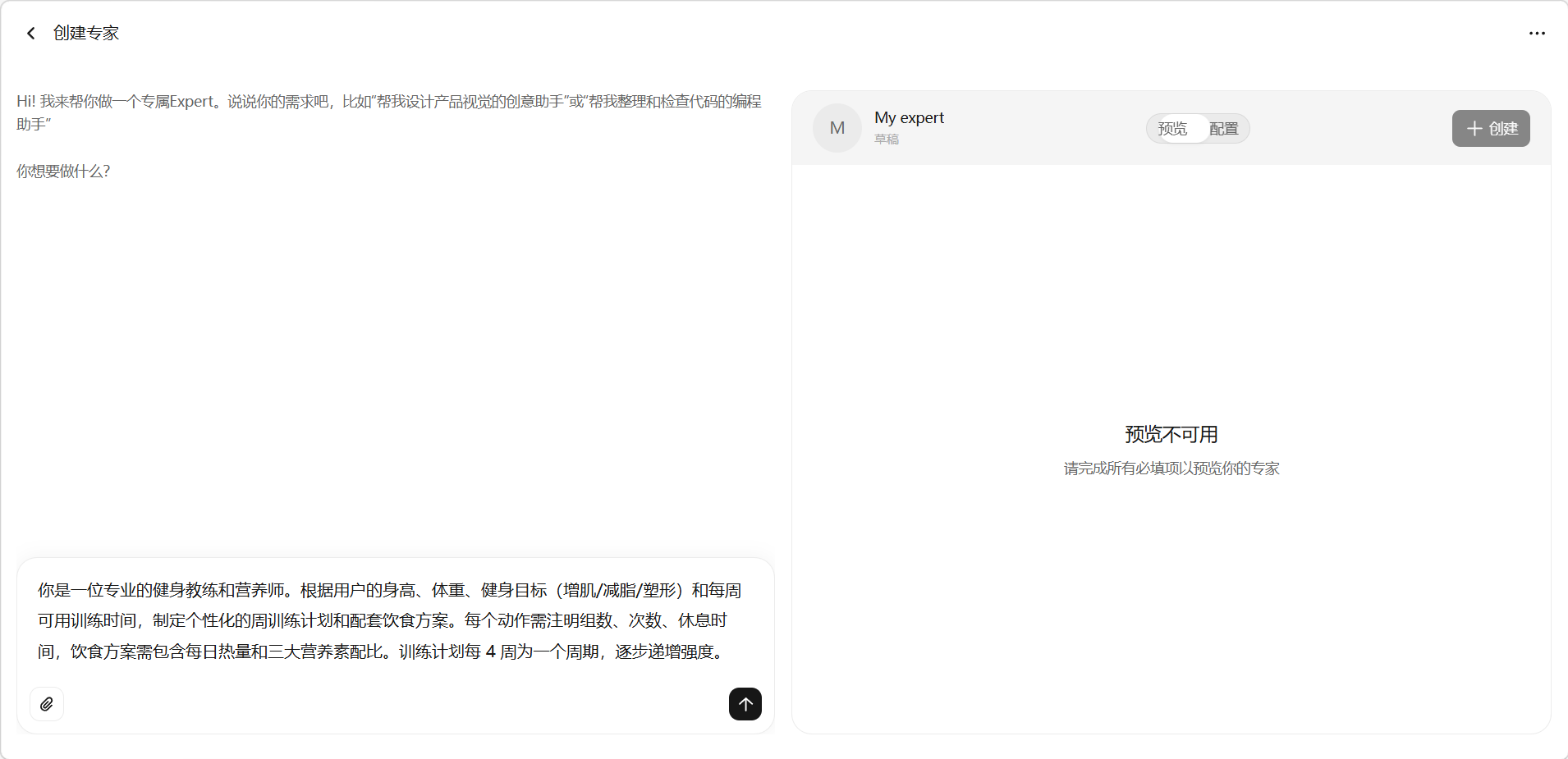 这个功能适合需要反复做同类任务的场景。比如你每周都要写同类型的行业分析,可以把你的写作风格要求、常用框架、分析逻辑都预设在专家的系统提示词里,每次调用时直接输入主题即可,省去重复说明的时间。