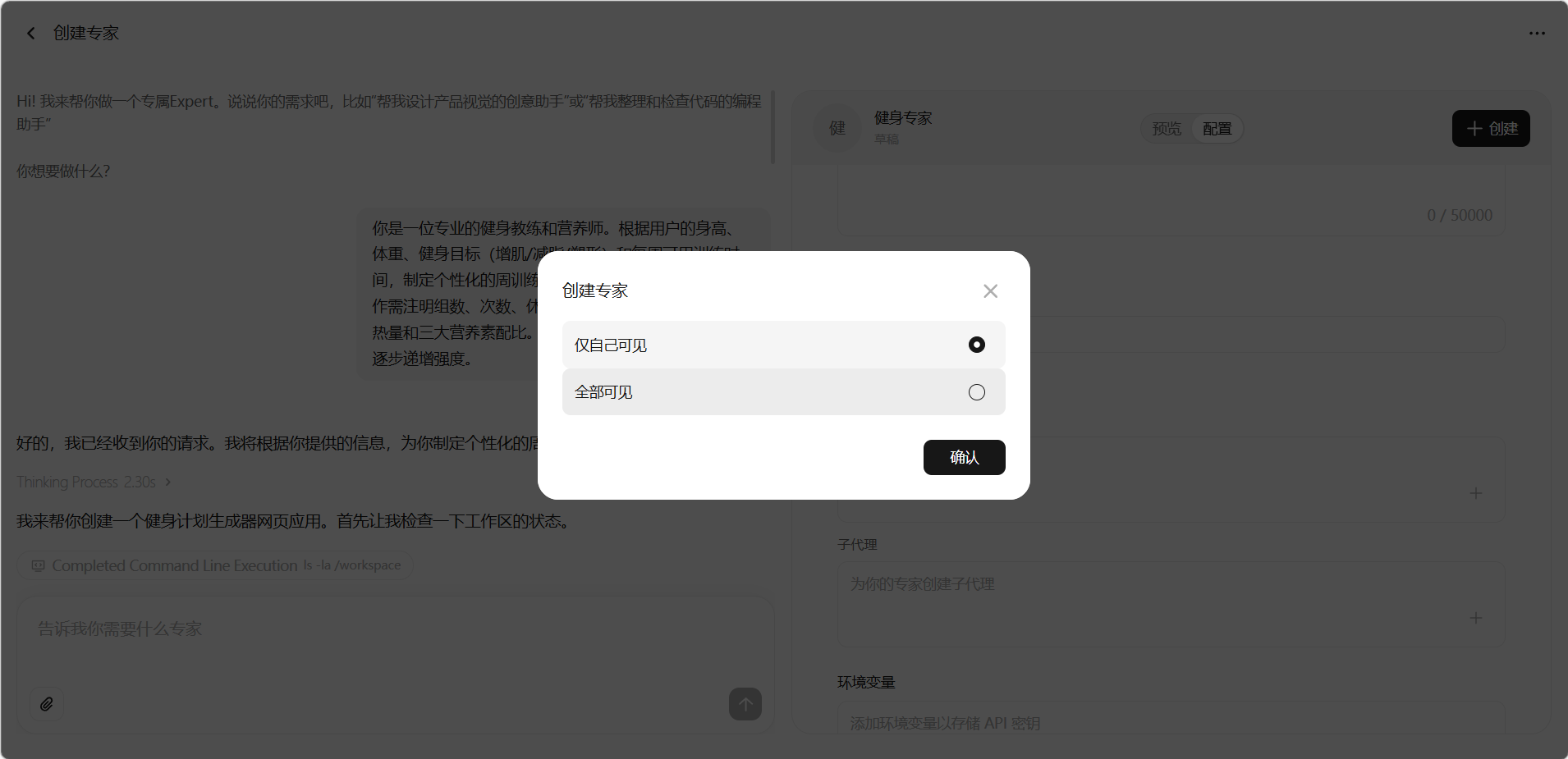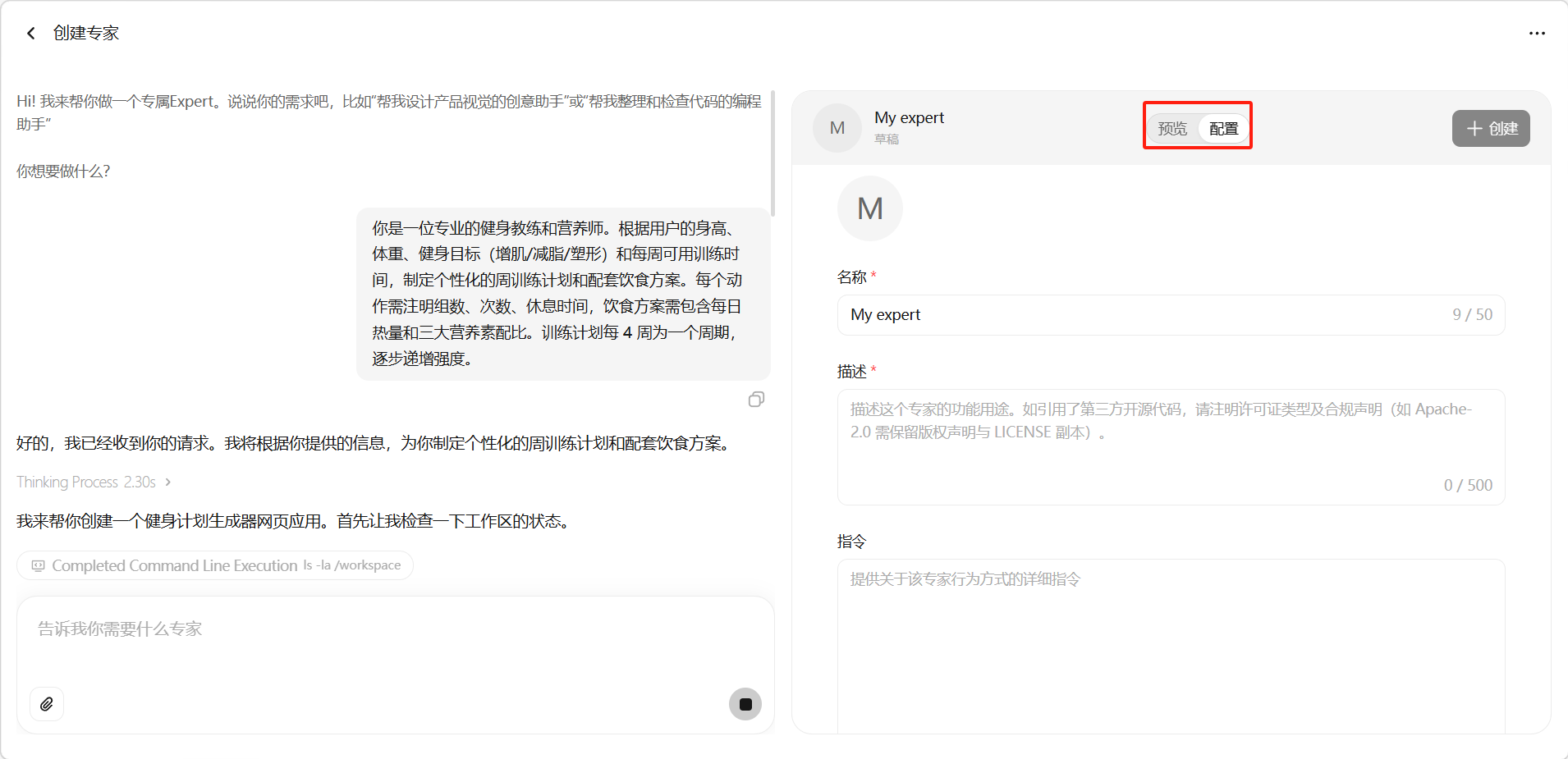 创建好的专家可以在「探索专家」>「我的专家」找到。