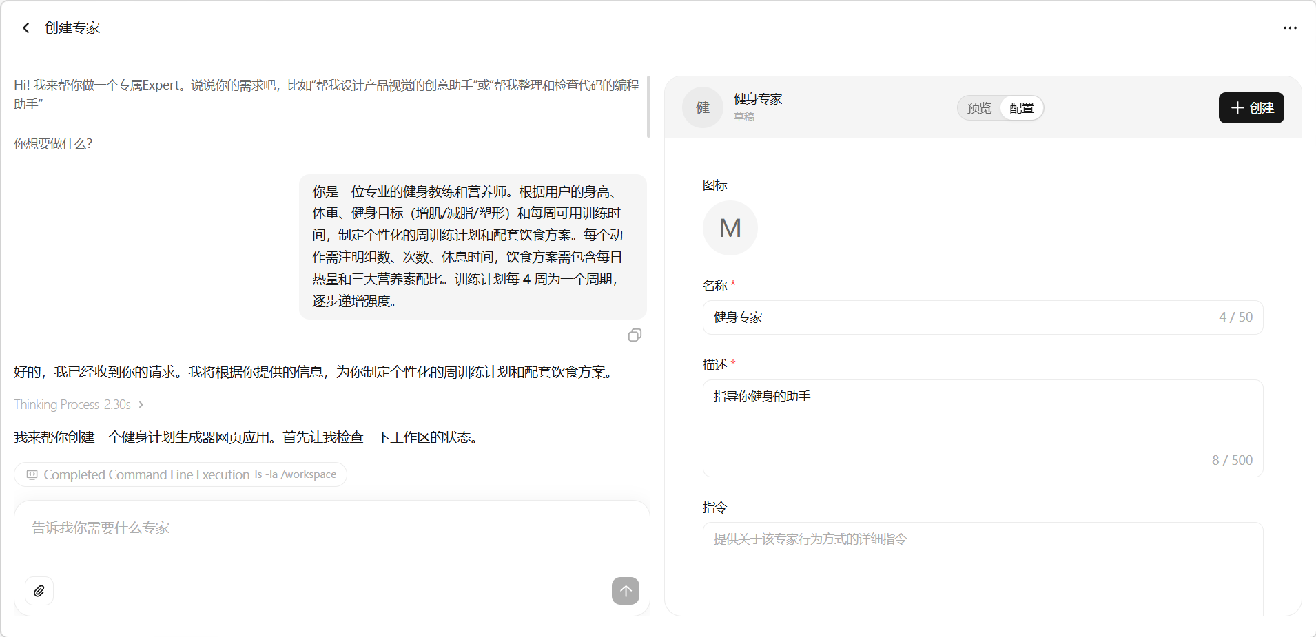 MiniMax会自动根据用户的需求创建专家所需要的文件。