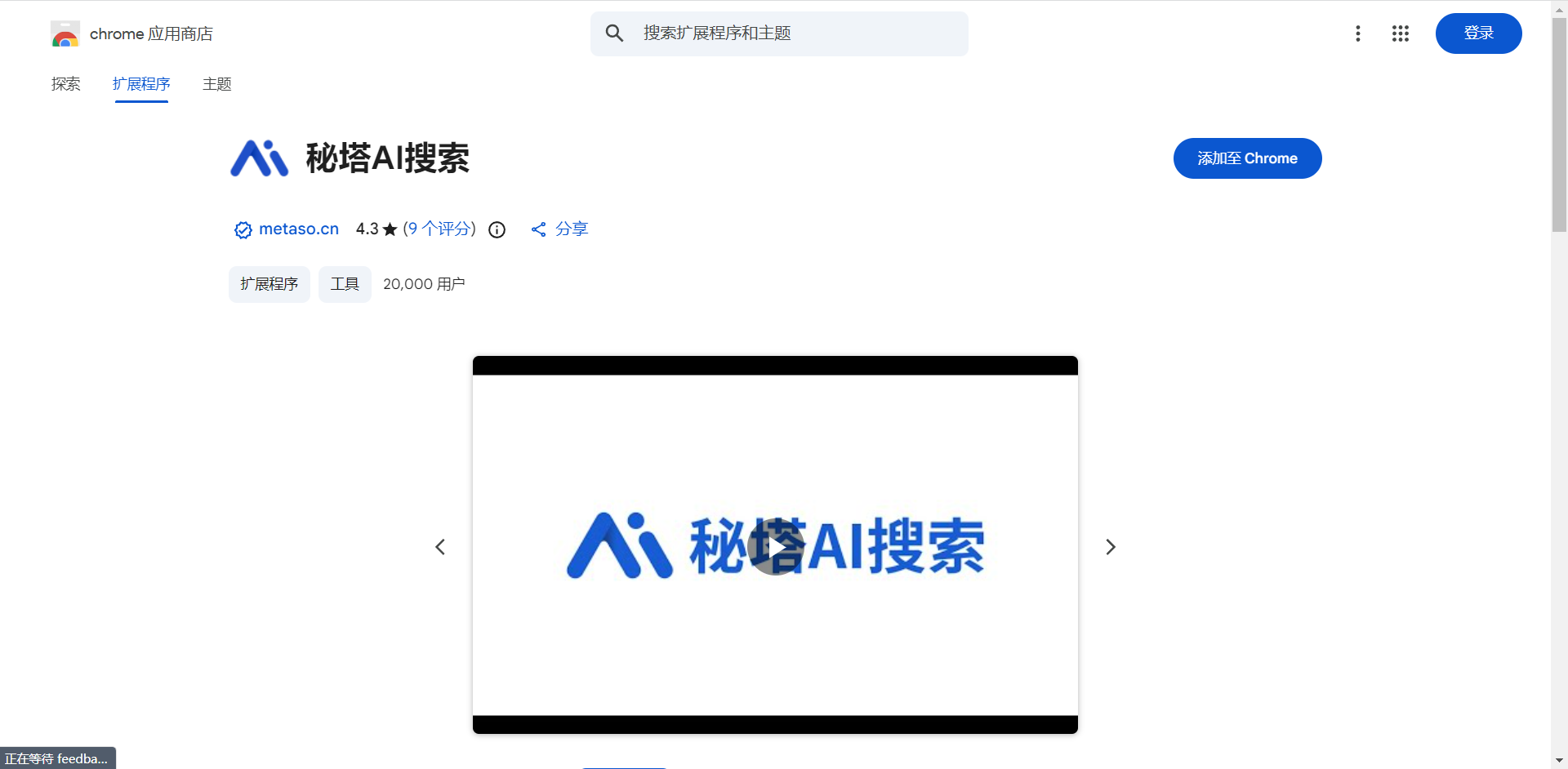 秘塔AI搜索提供了 Chrome 浏览器扩展插件,在下方地址搜索「秘塔AI搜索」即可安装使用。