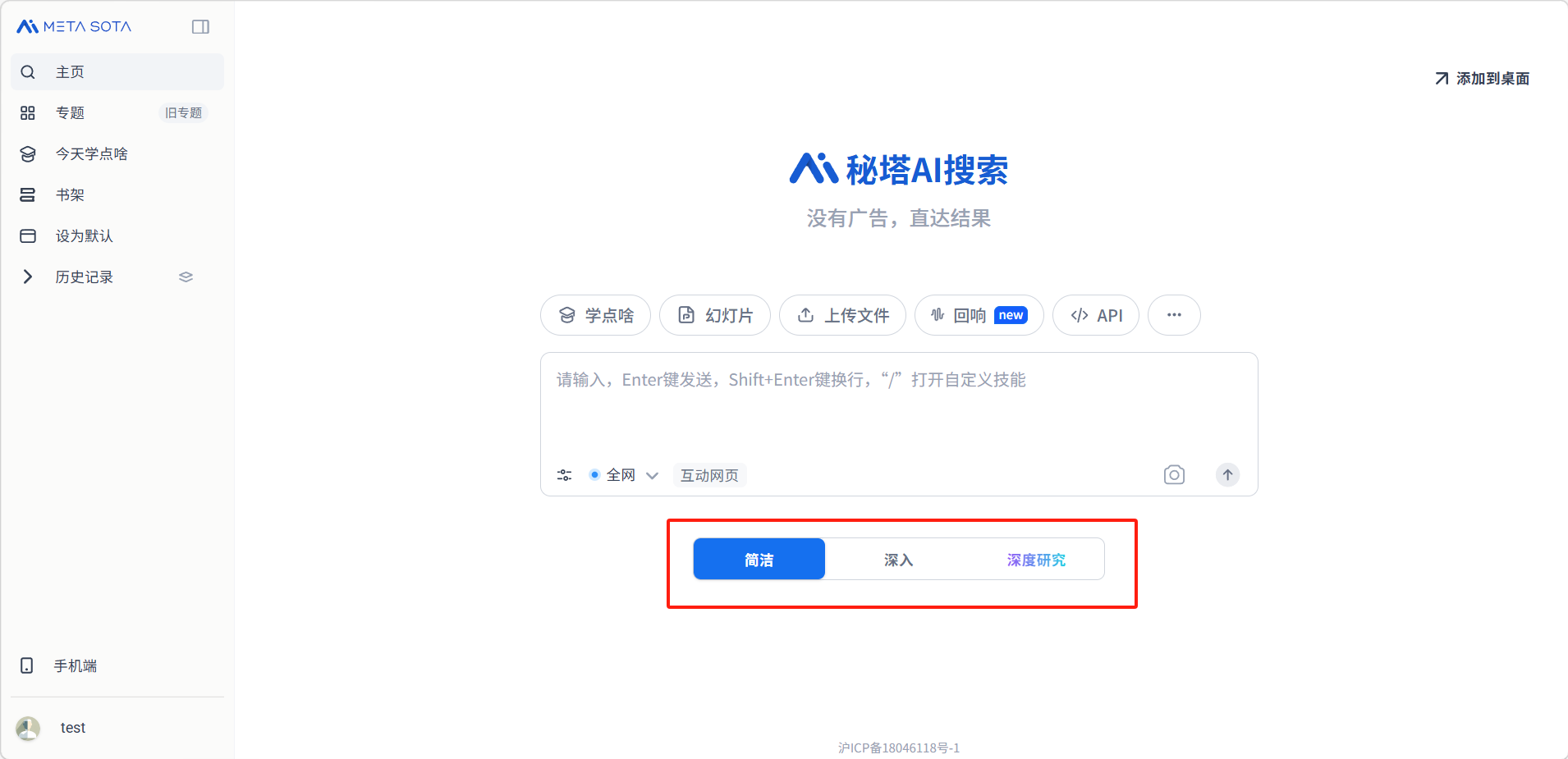在秘塔AI搜索主页的输入框中,直接用自然语言输入你的问题,按回车键发送即可。你不需要像传统搜索引擎那样提炼关键词,可以用完整的口语化表达来提问。