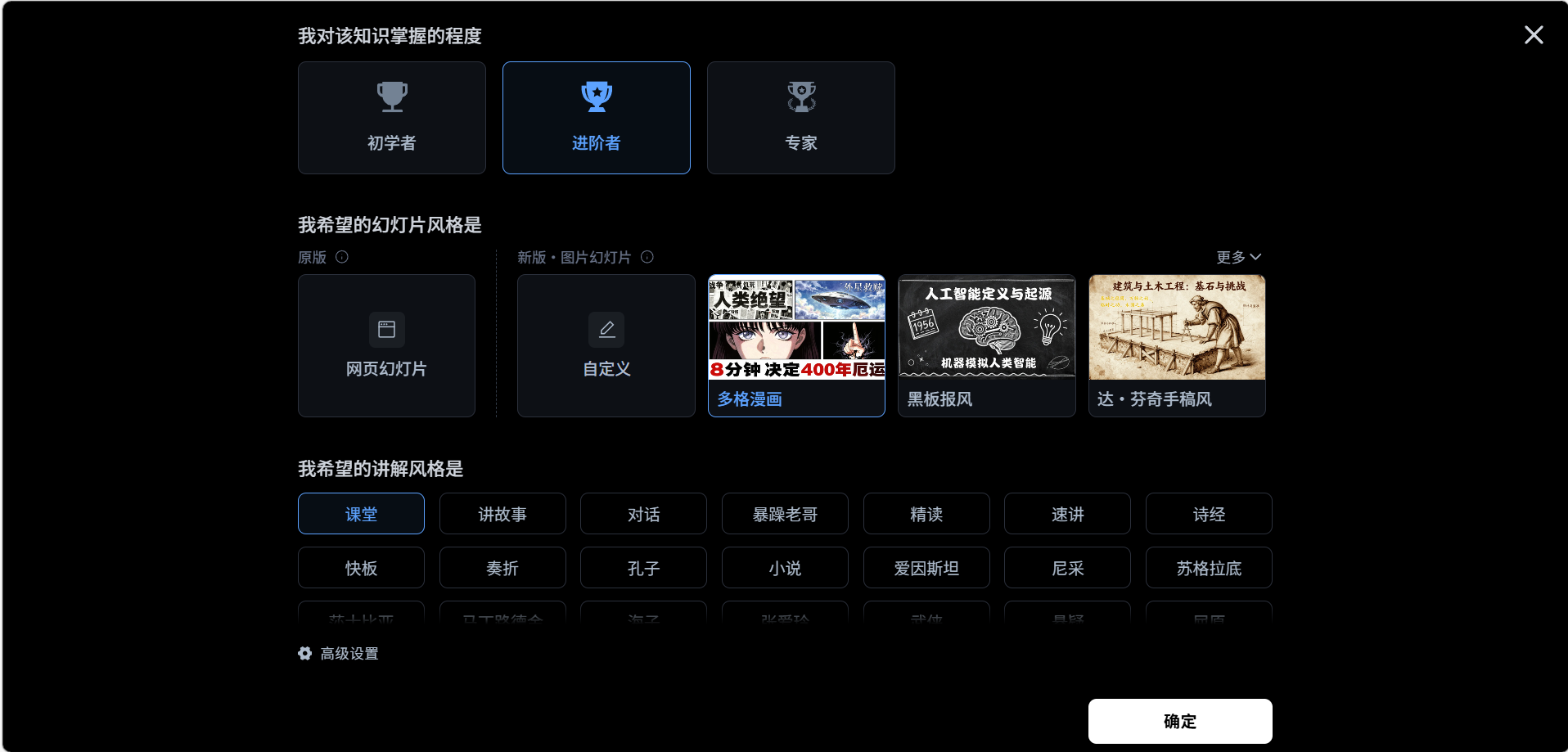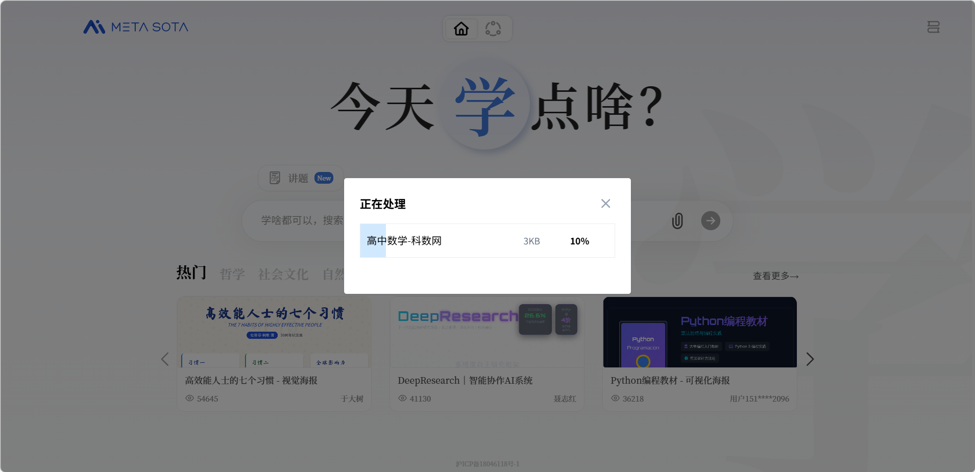 输入网址或上传文档确认,下方还有许多预设好的学习课程可以选择。