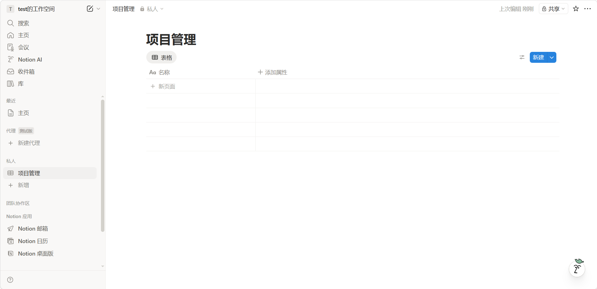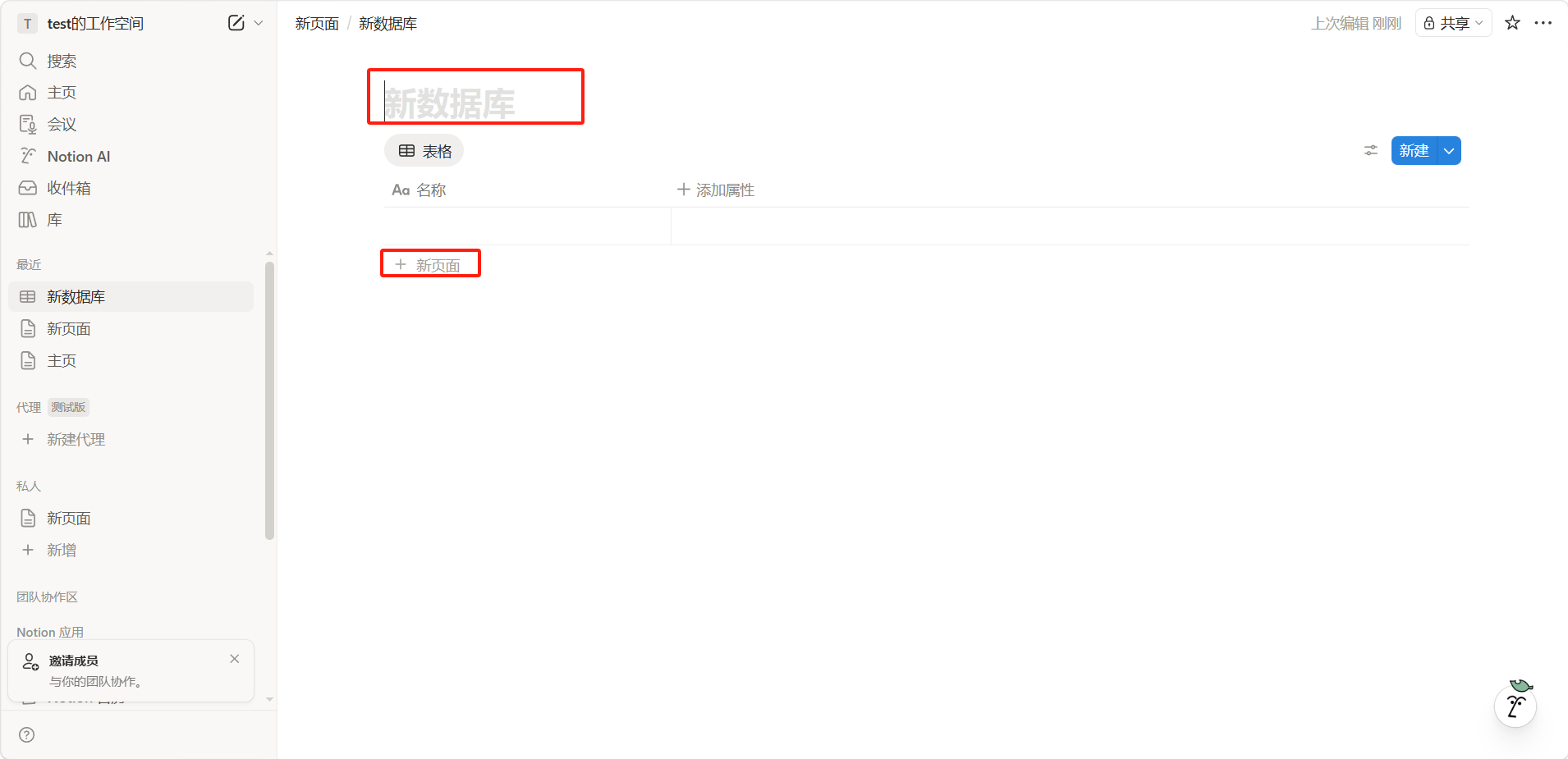 为数据库命名,点击「+ 新页面」添加数据库行。