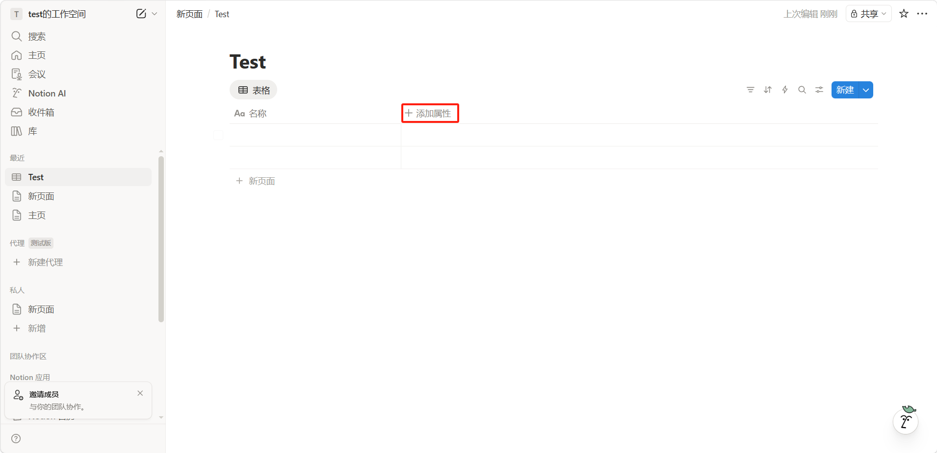 在数据库中点击「添加属性」按钮。