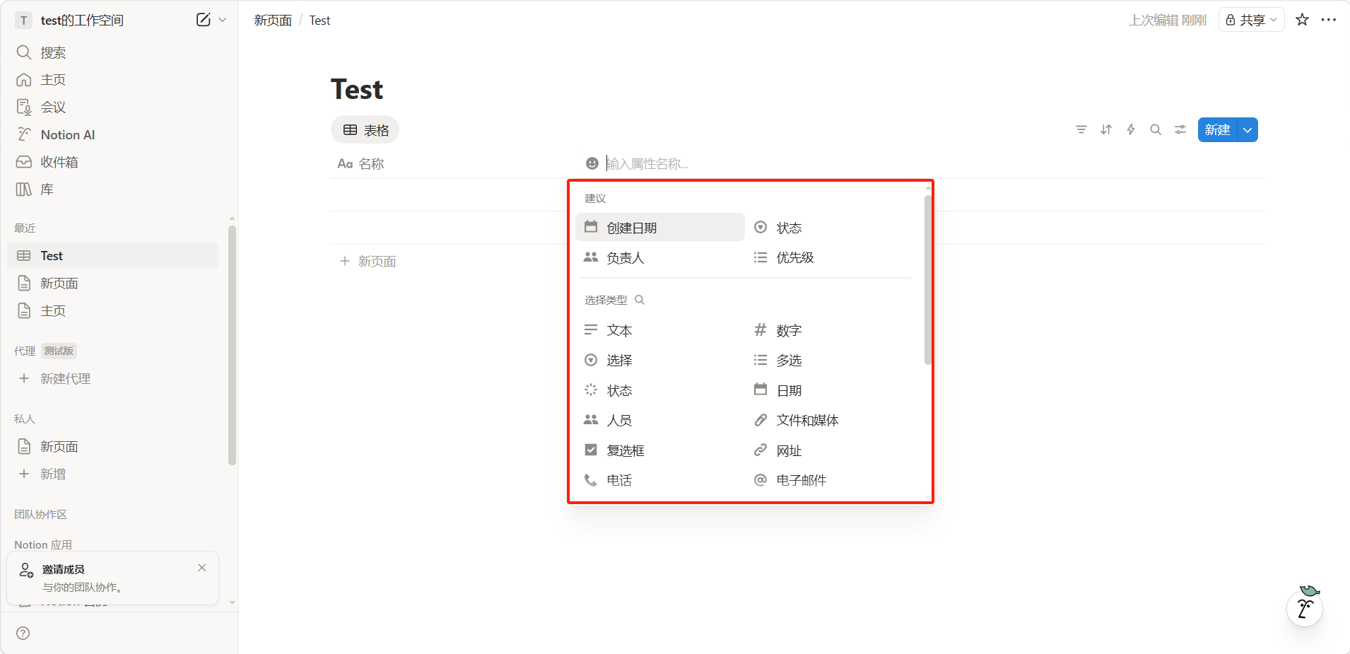 属性就是数据库的"列",用来定义每条数据的特征。Notion 提供了丰富的属性类型: