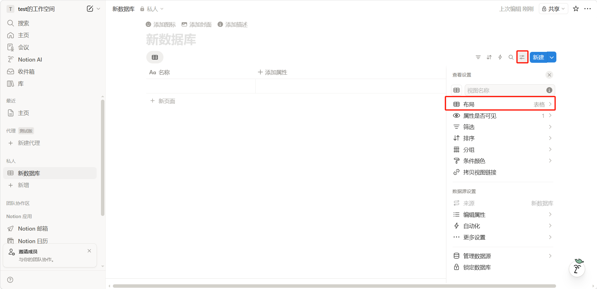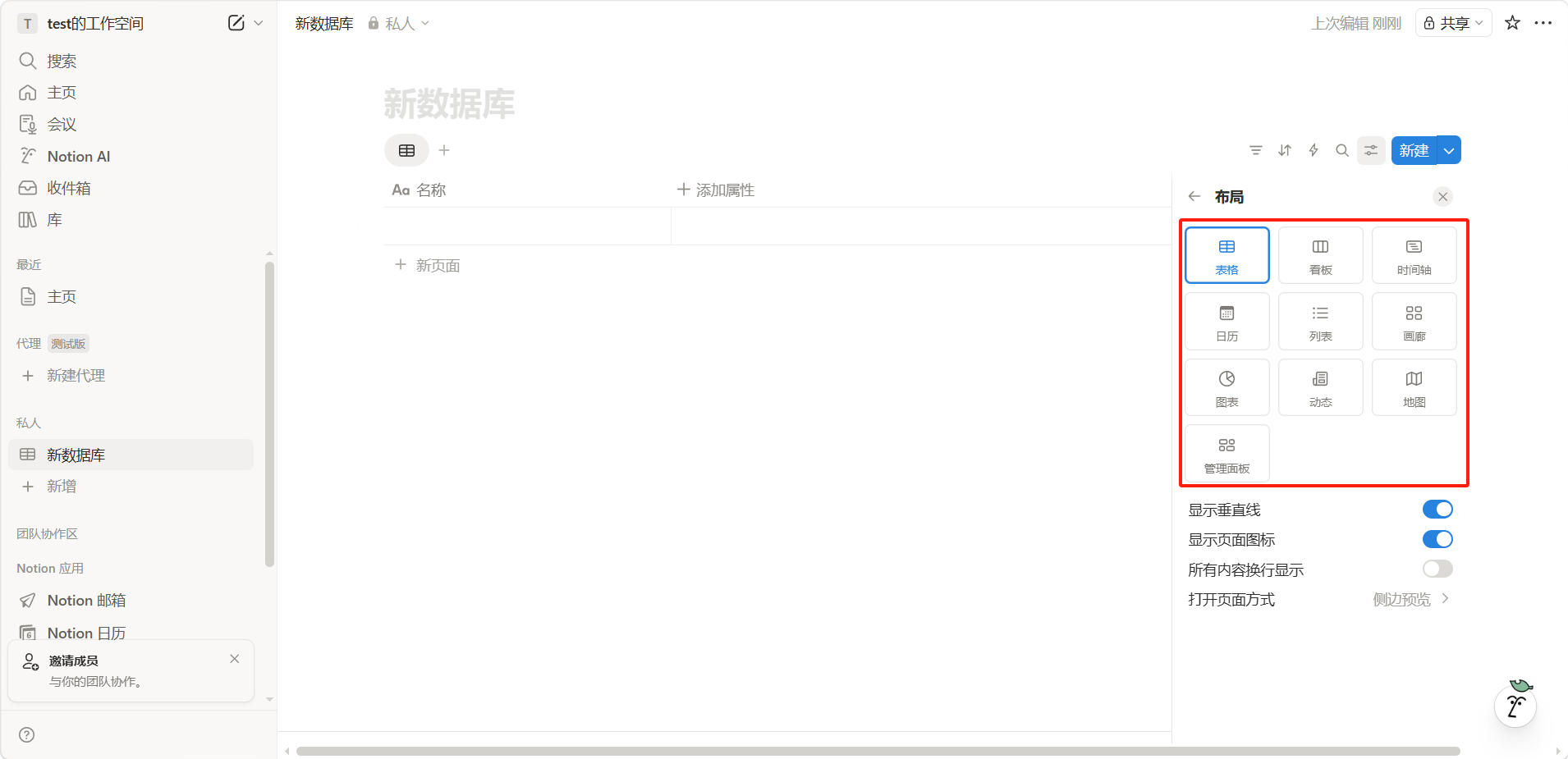 选择视图类型(表格、看板、日历、时间线等)。