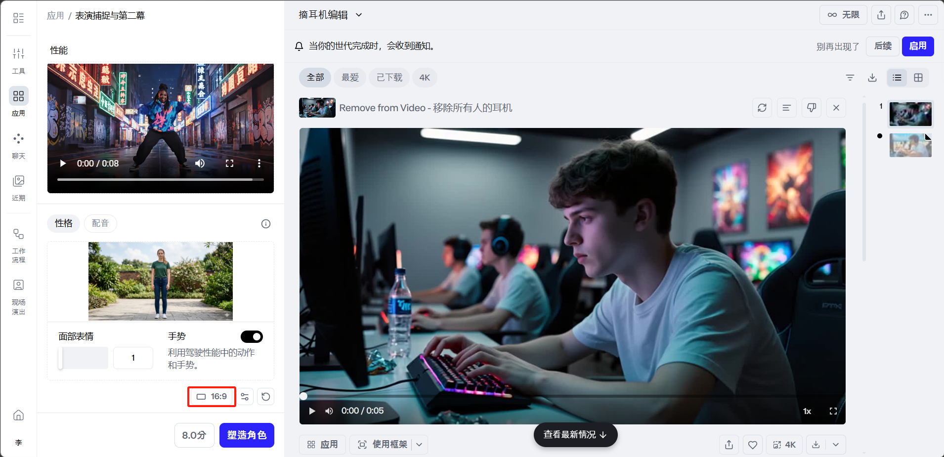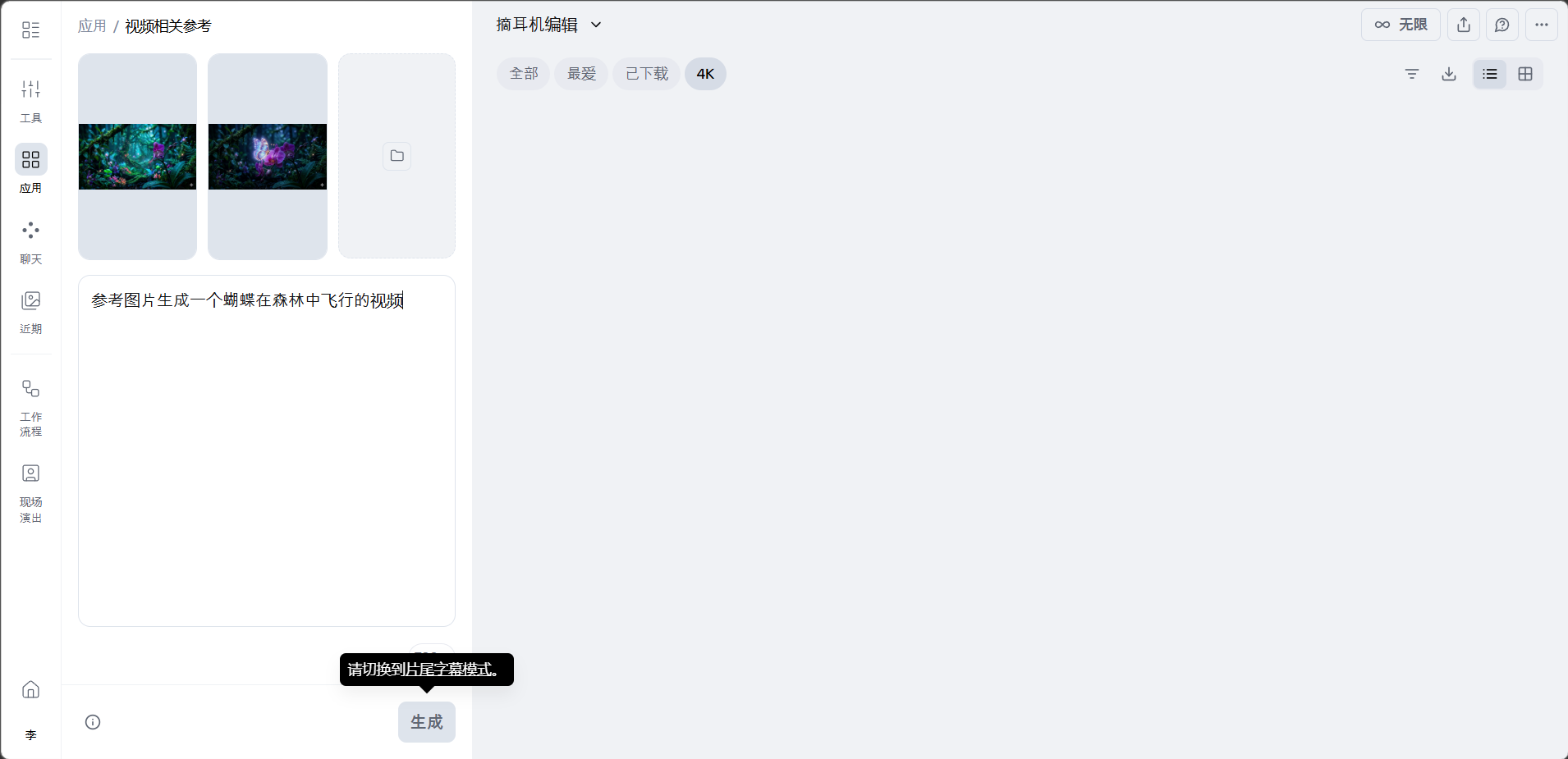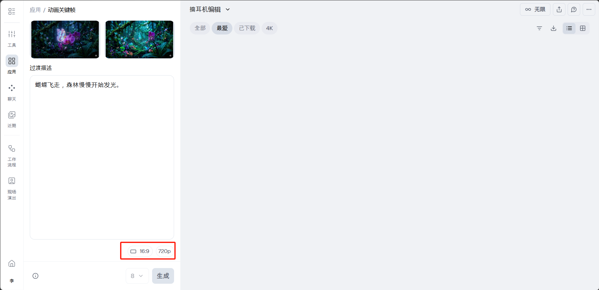 设置好底部参数,点击「生成」按钮即可开始创建。