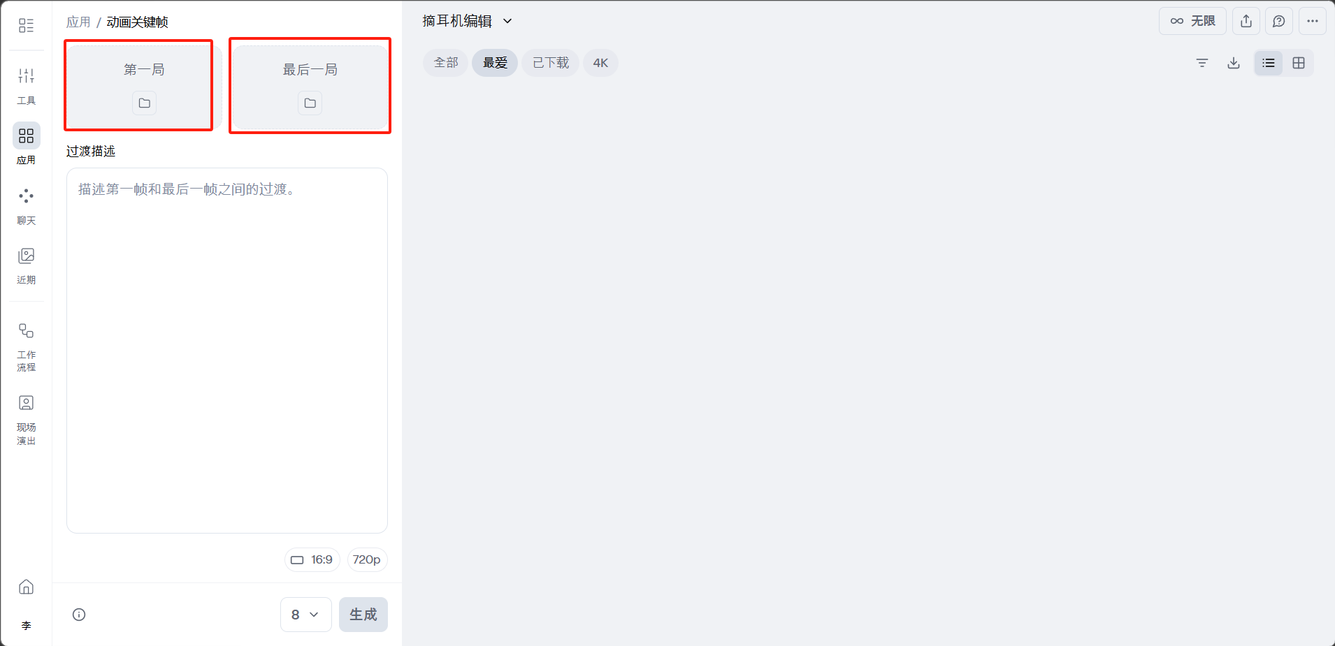 分别上传「第一帧」和「最后一帧」图片。浏览器可能会翻译成「第一局」「最后一局。」
