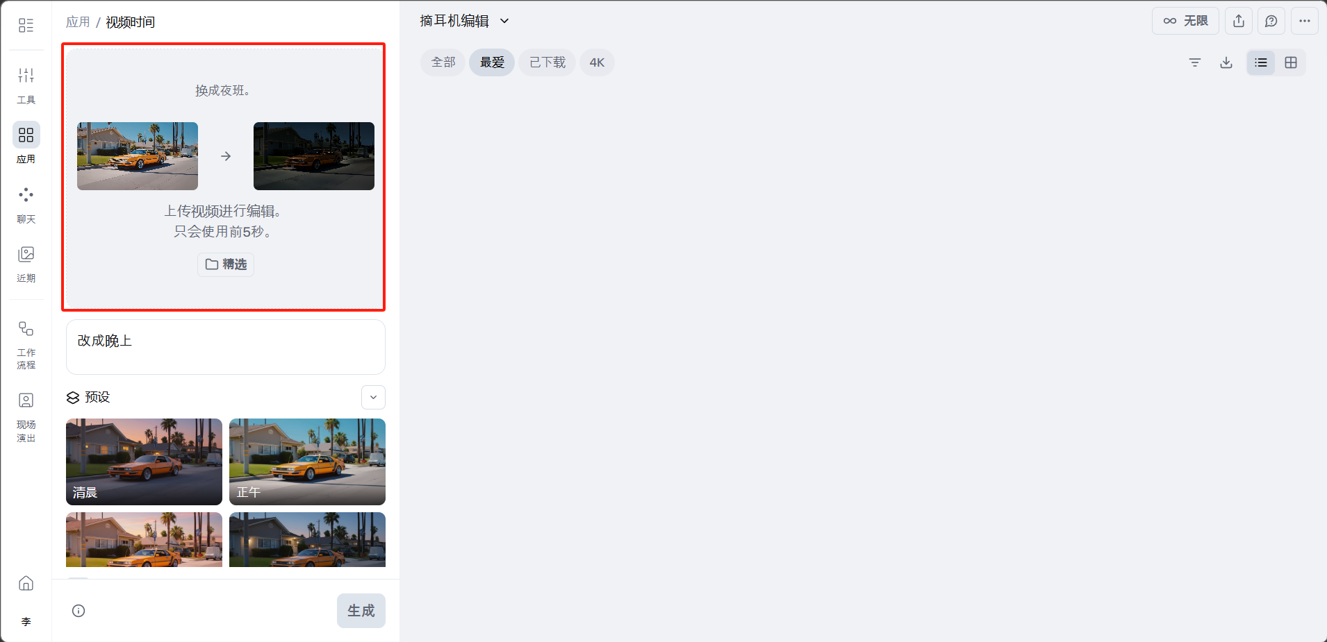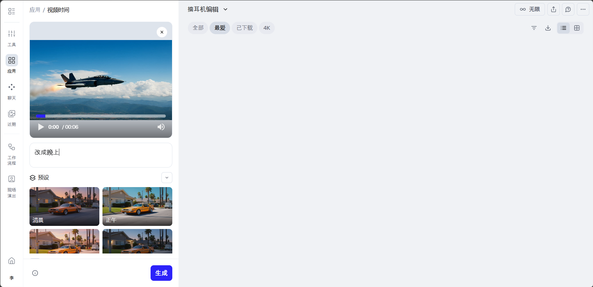 在文本框中描述一天中的时间变化,或应用下方预设,点击「生成」即可。