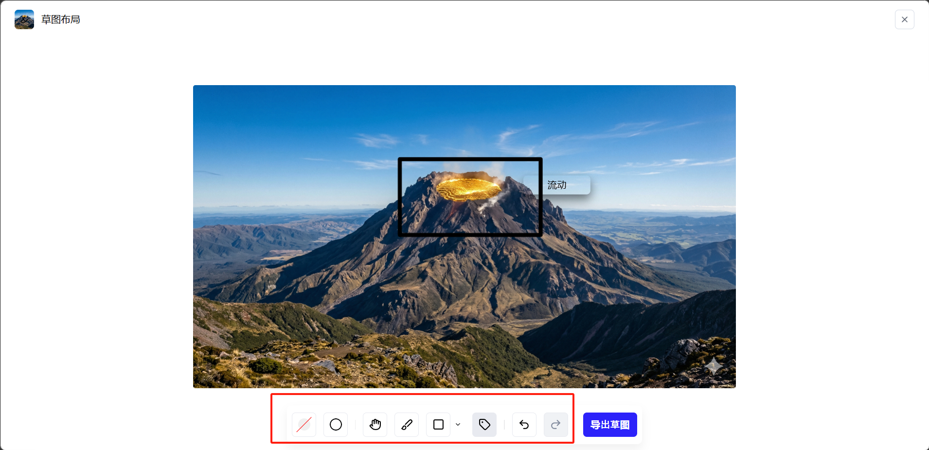 在画面上用工具标记运动方向和动态。然后点击「导出草图」。