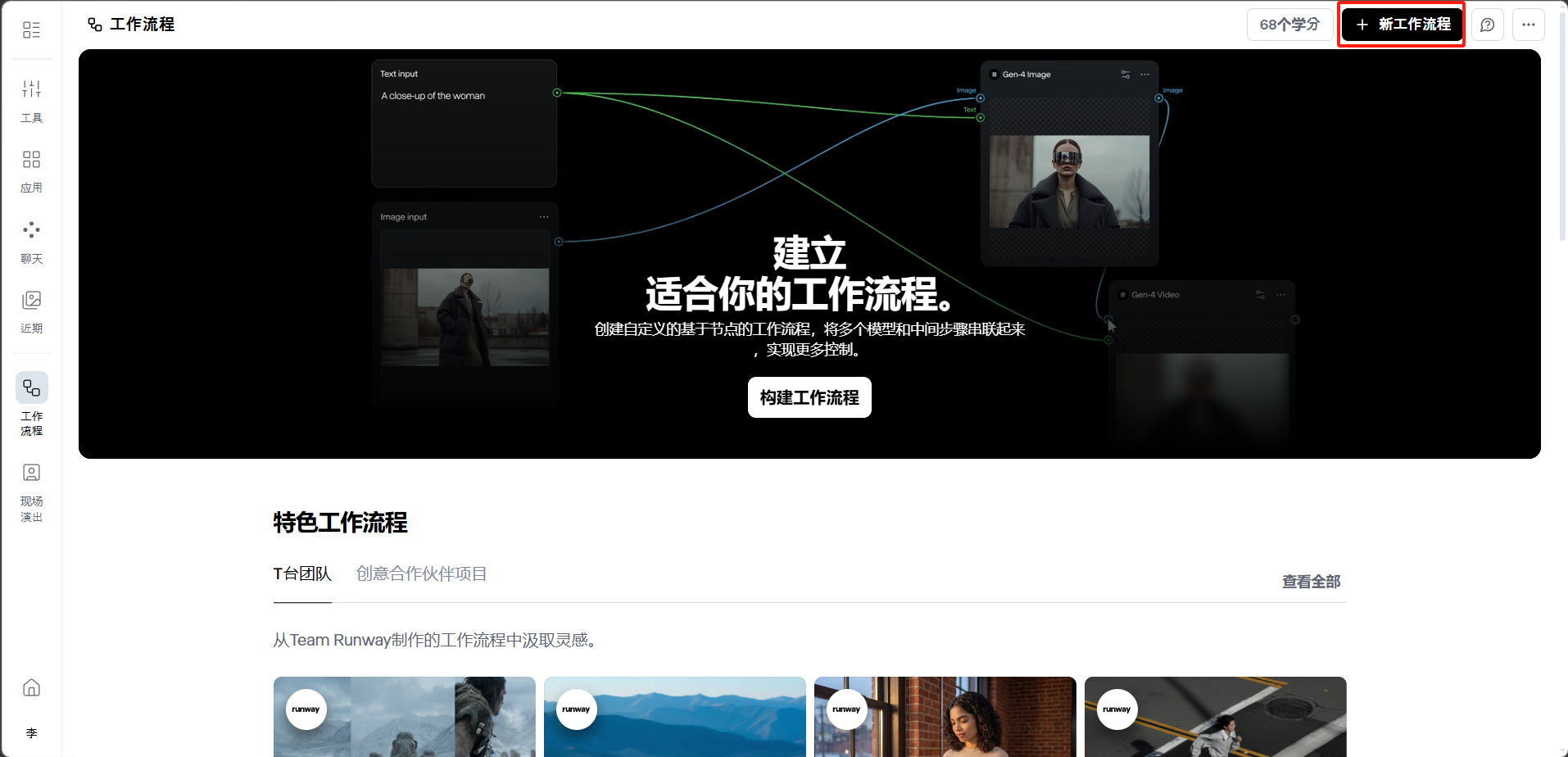 - 从模板开始:先使用 Runway 提供的特色工作流模板,了解节点连接逻辑后再创建自己的工作流