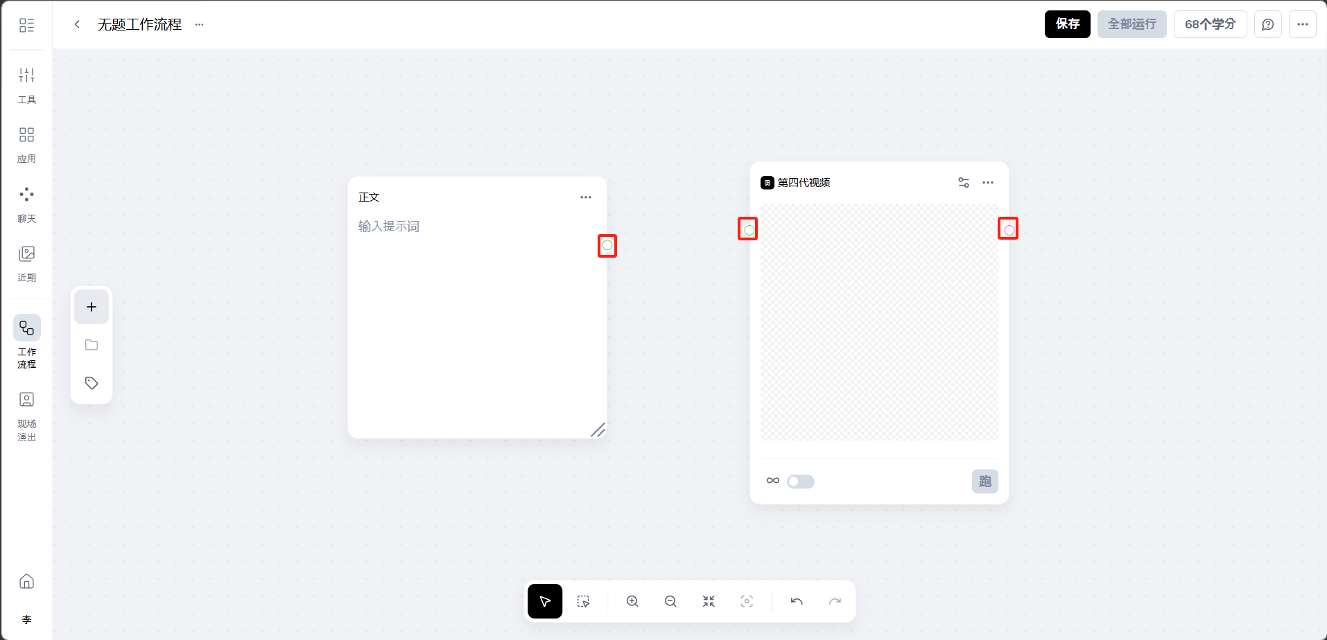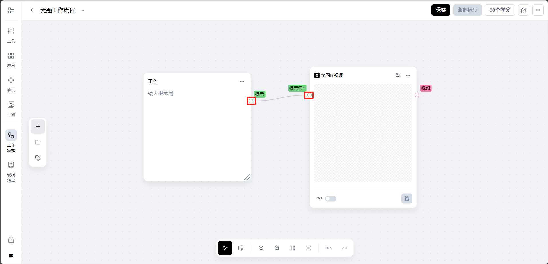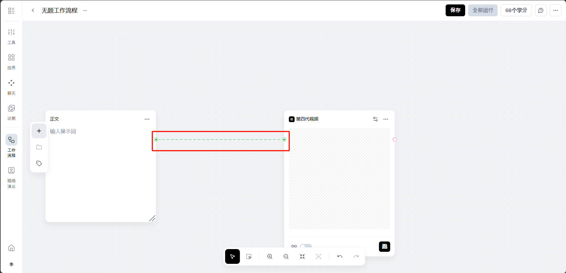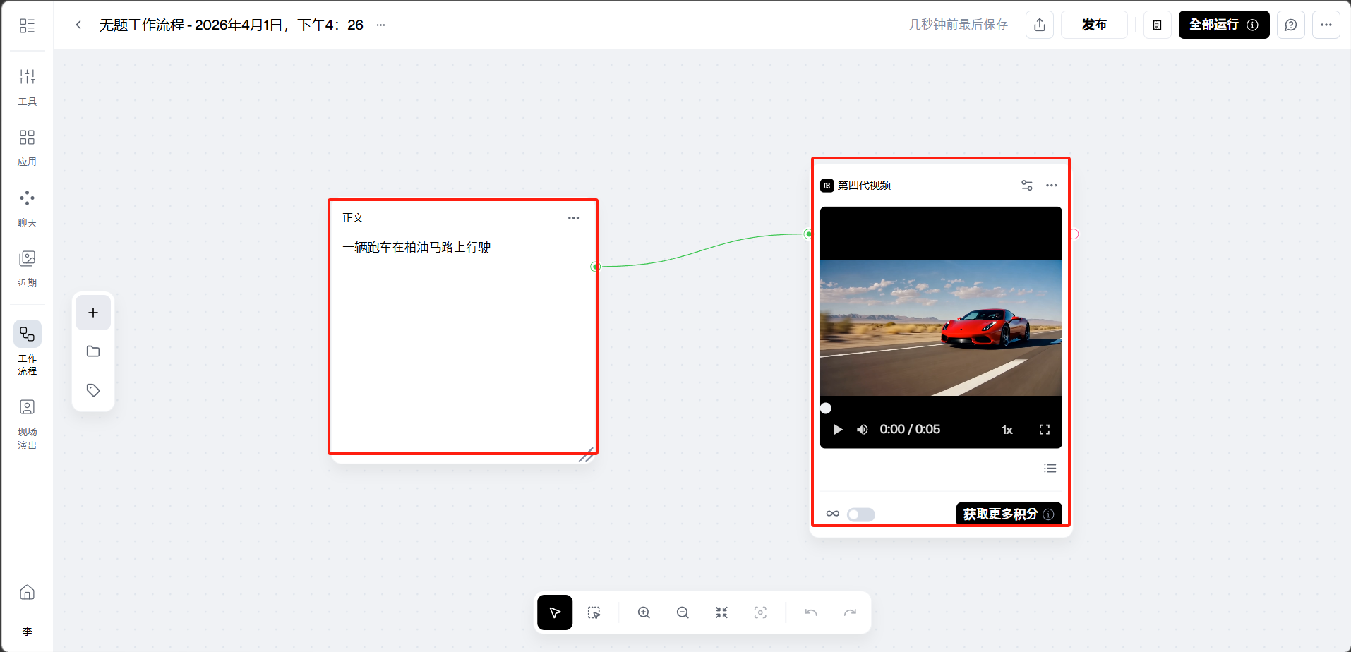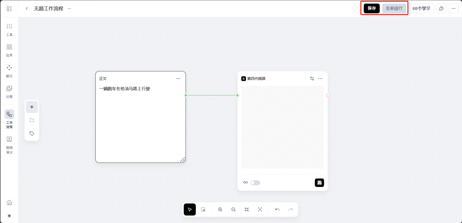 完成节点连接后,点击「保存」,然后点击右上角的「全部运行」按钮。