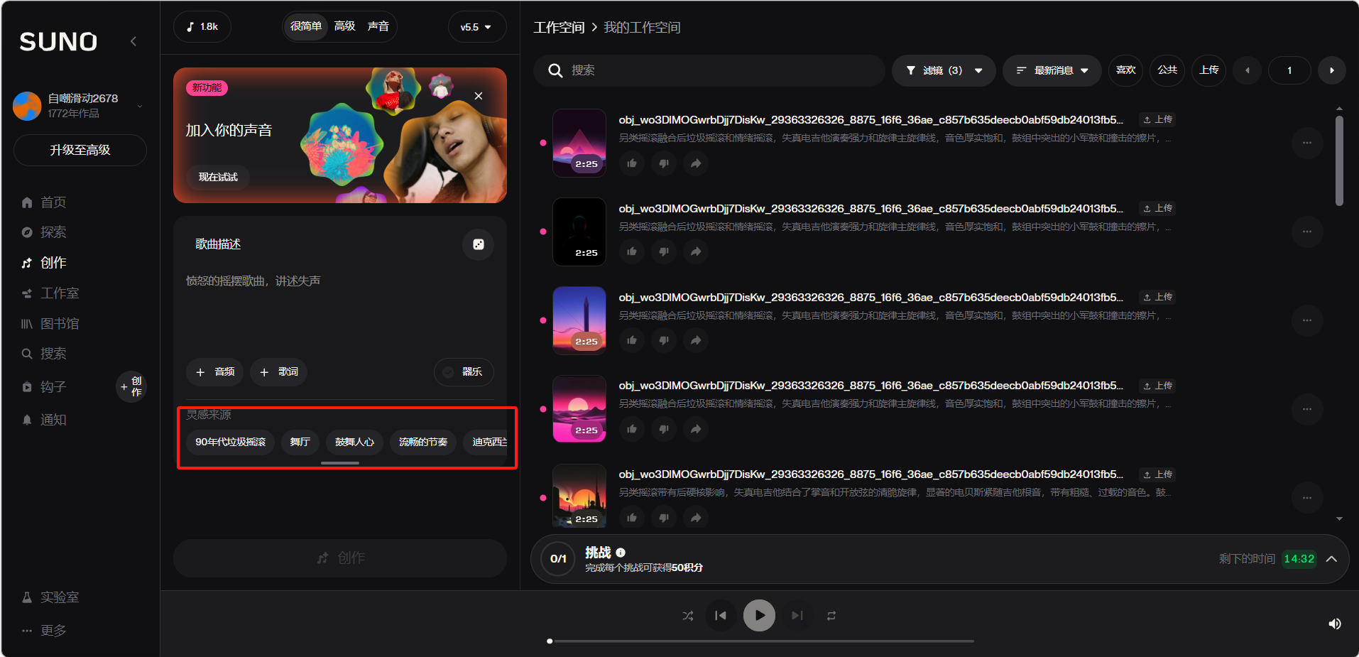 灵感标签本质上是 Suno 预置的风格和元素关键词,帮助用户:
