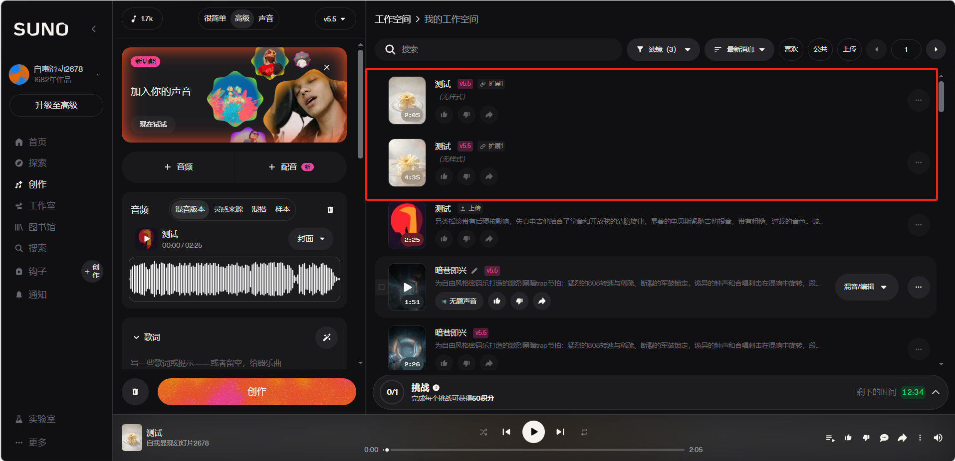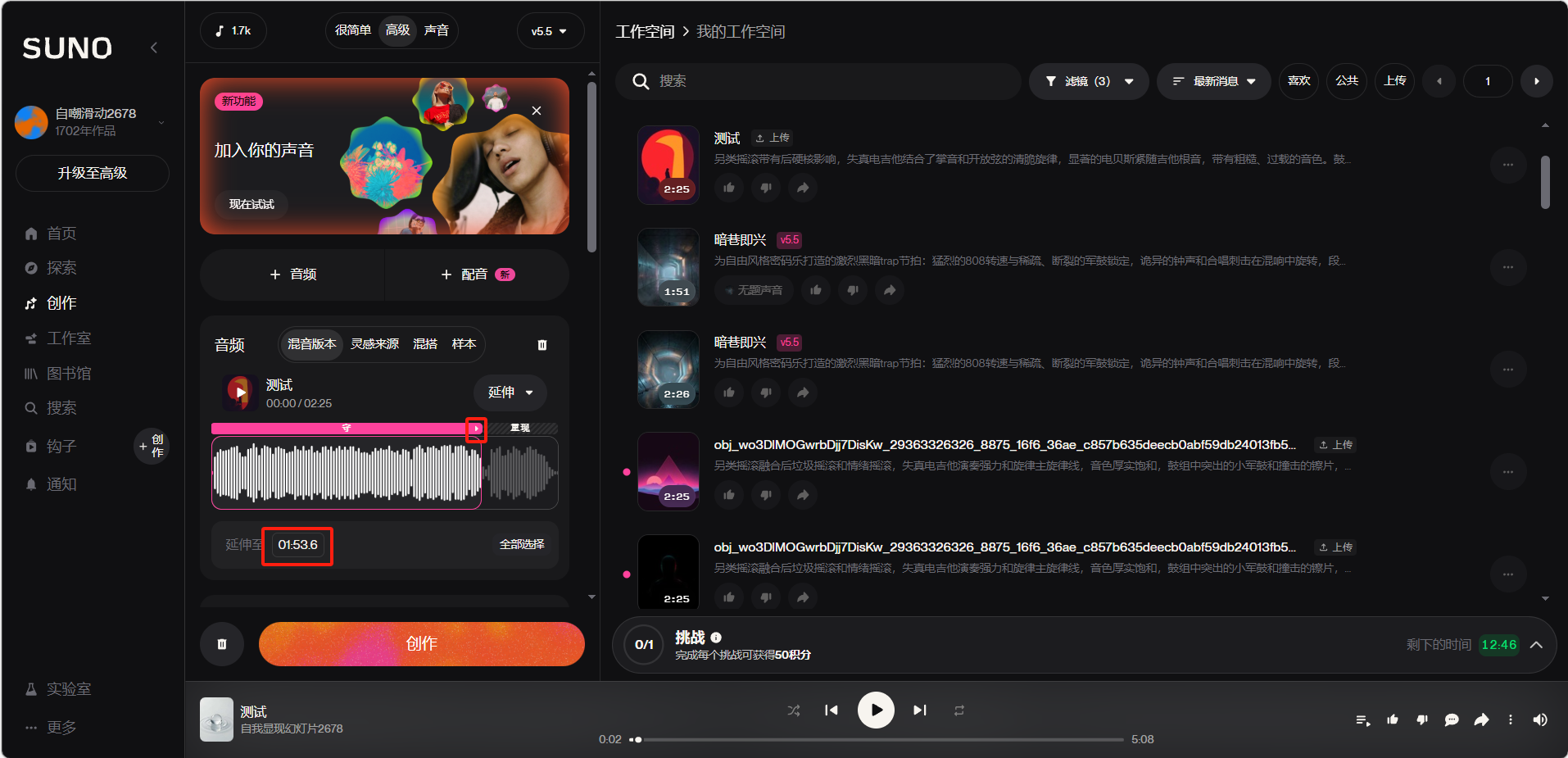 Suno会生成两版延伸后的片段,用户可以试听后可以自行选择。
