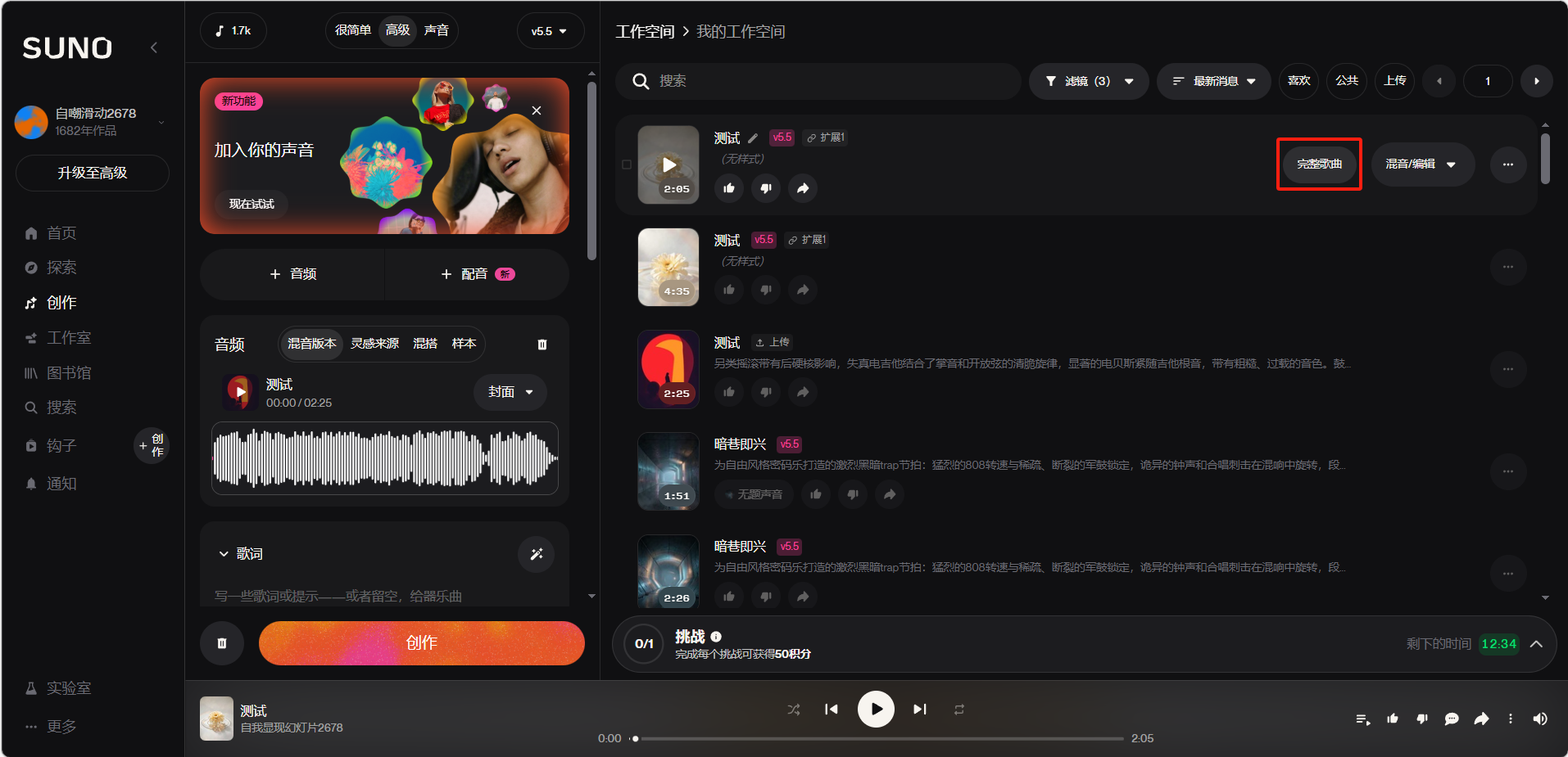 选择好后点击「完整版」即可生成完整的歌曲。