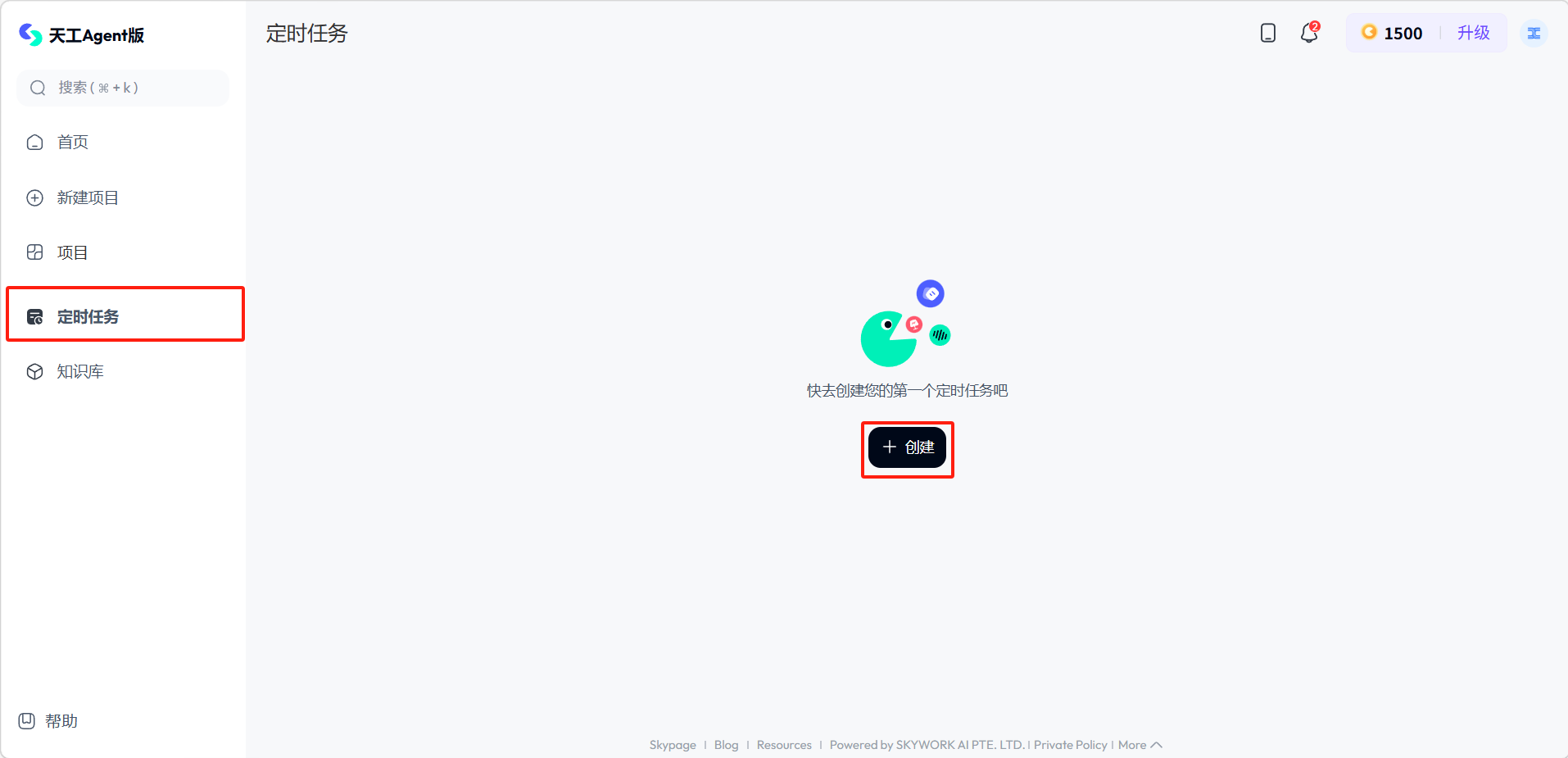 点击左侧边栏的「定时任务」,然后点击「创建」。