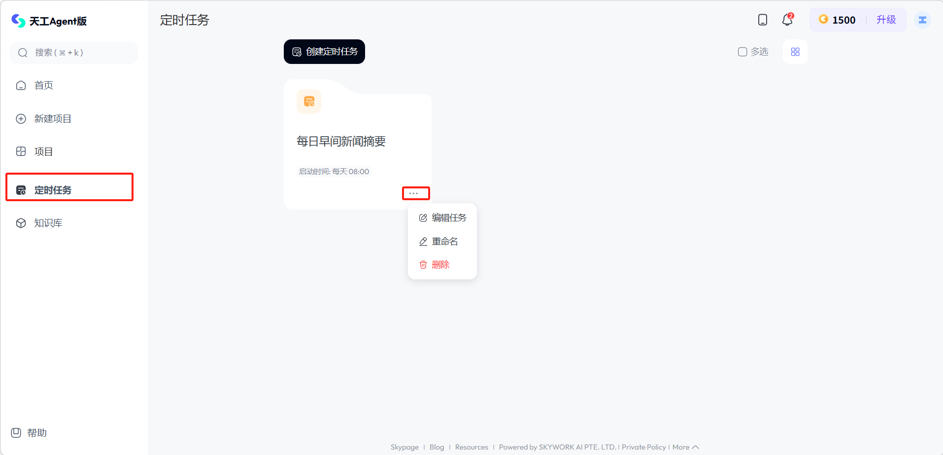 创建好的定时可以在左侧边栏「定时任务」中查看,点击任务右下方「...」还可以编辑任务和重命名。