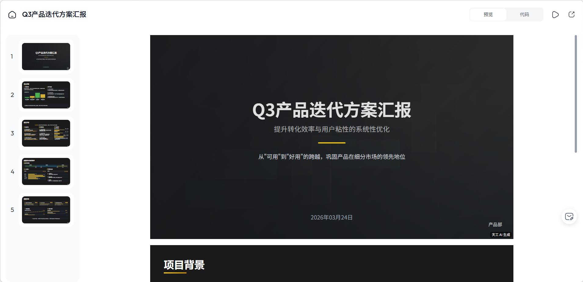- 指定导出格式:提前说明需要PPTX还是PDF,天工会针对性优化排版