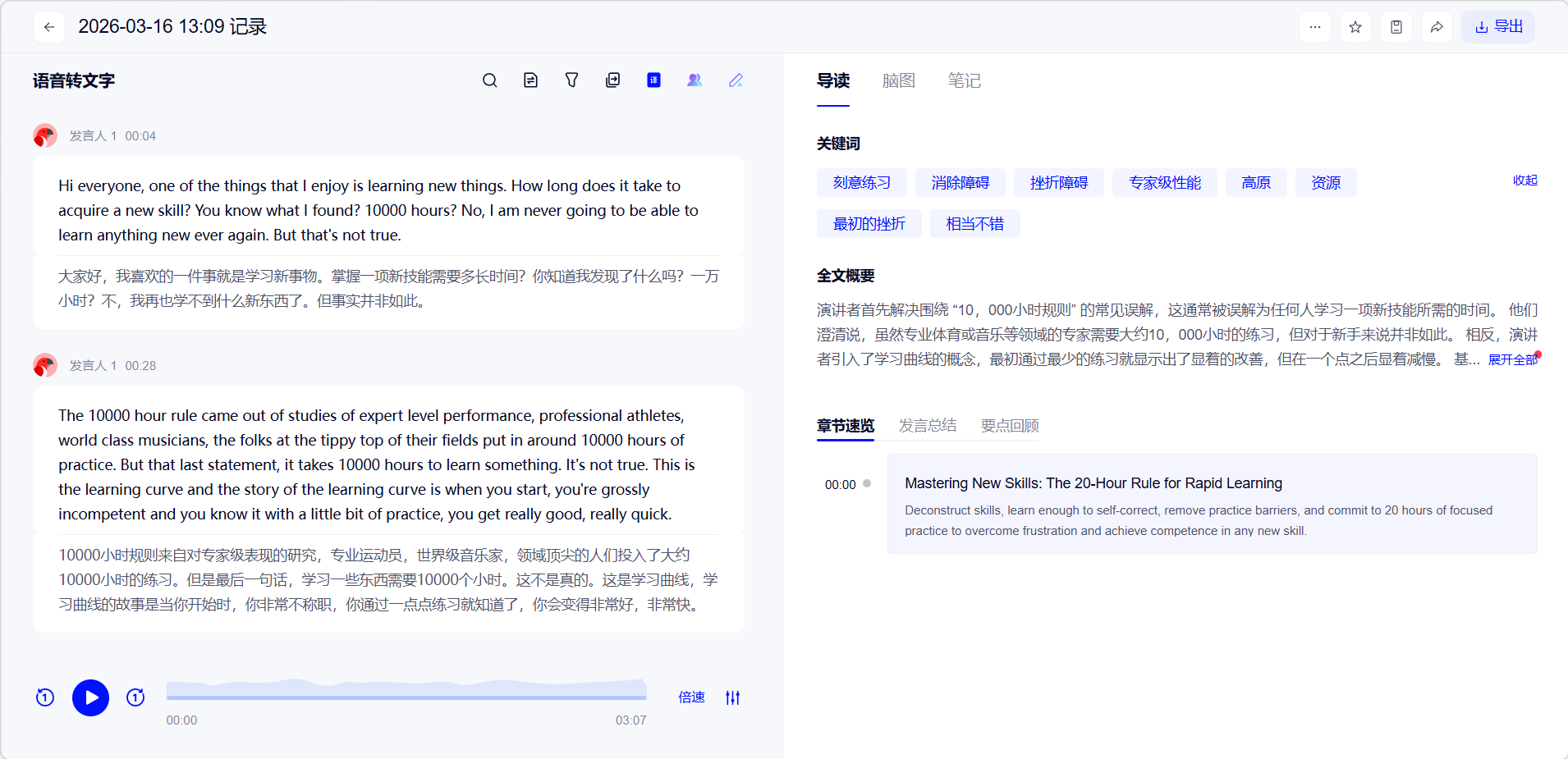 - 演讲练习 — 练习演讲时录音,分析内容结构和表达方式,找出改进方向