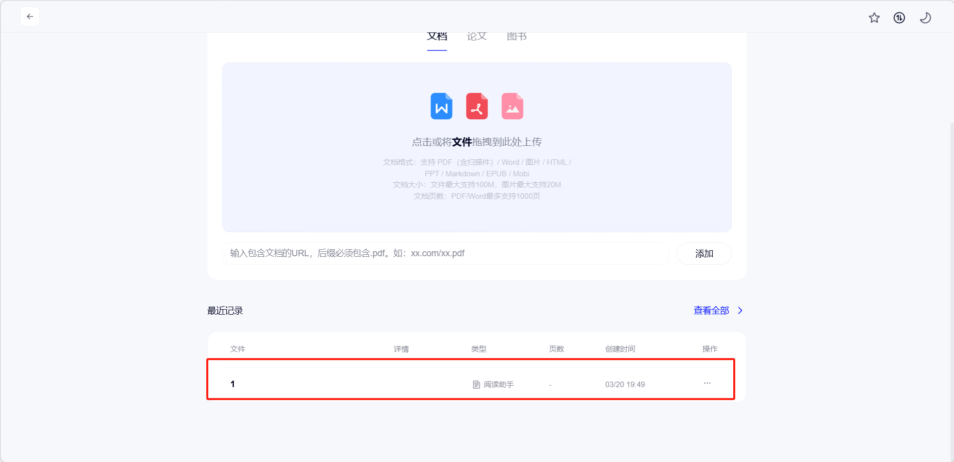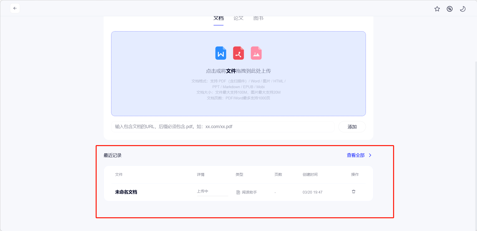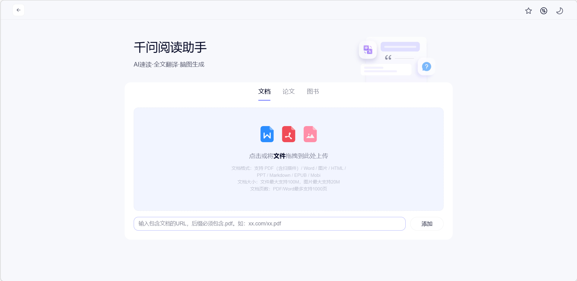 URL导入——输入文档URL(后缀须为.pdf),无需下载即可阅读。