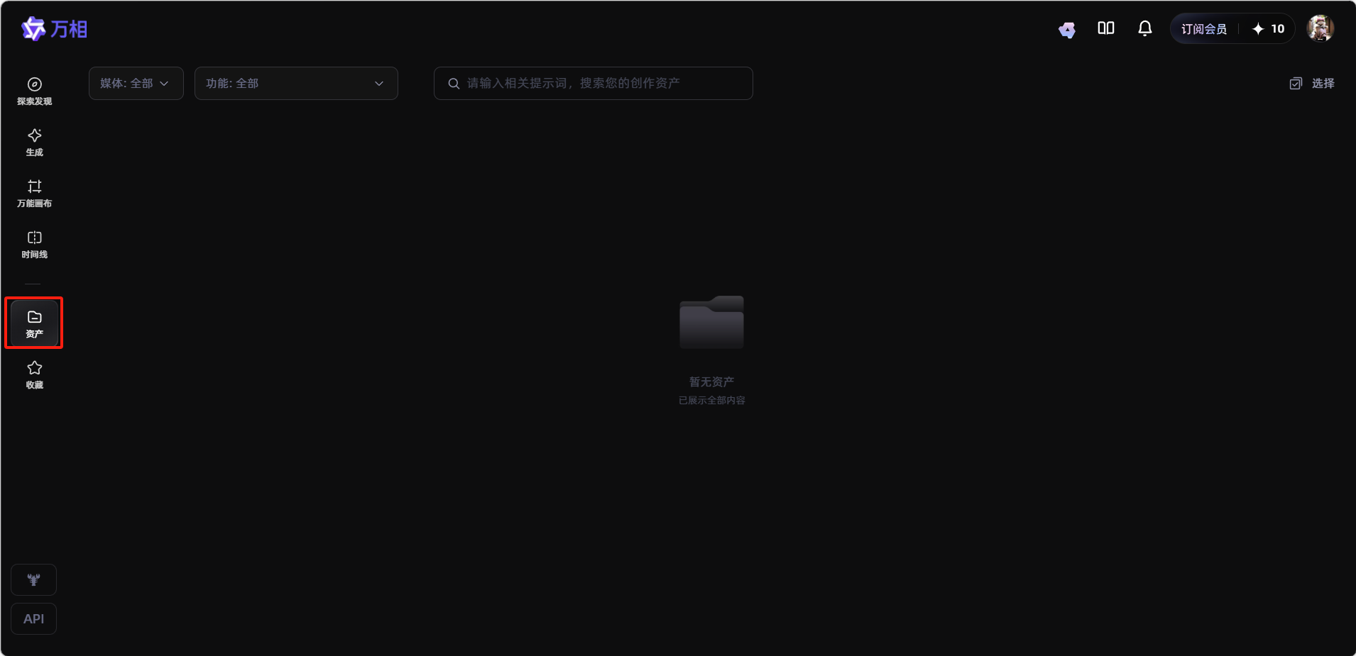 资产是通义万相的素材管理中心,存储了用户的所有创作原料和成果。