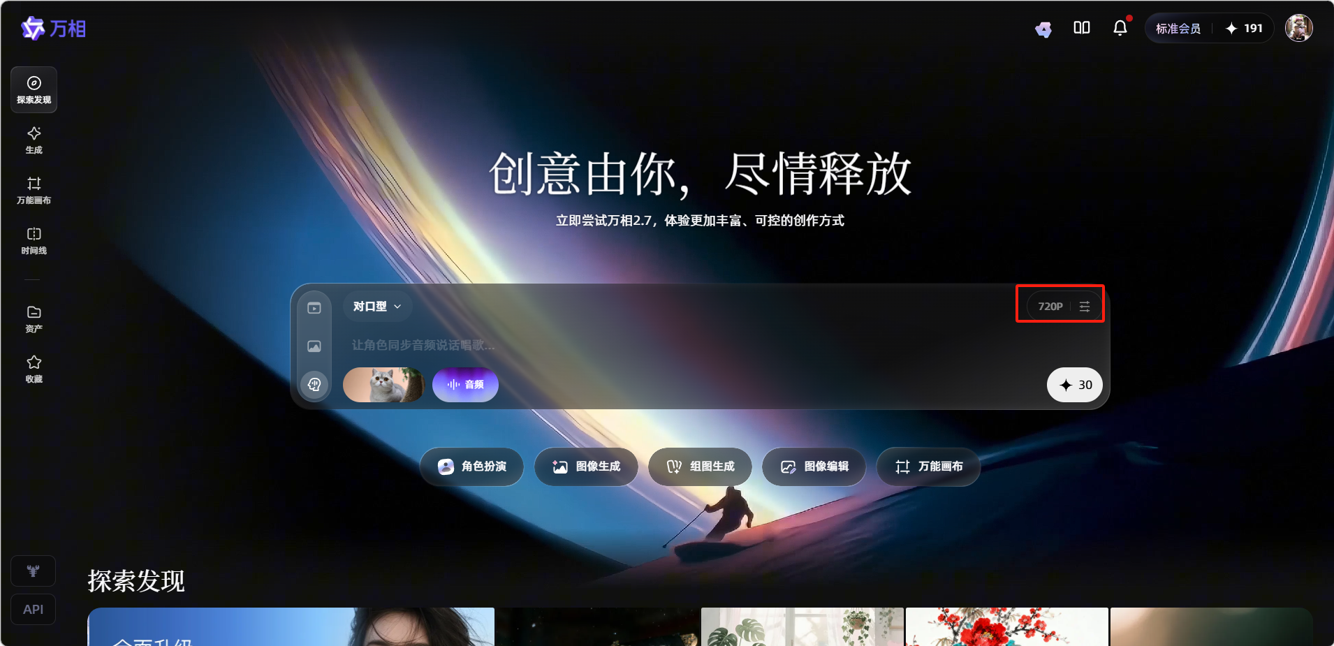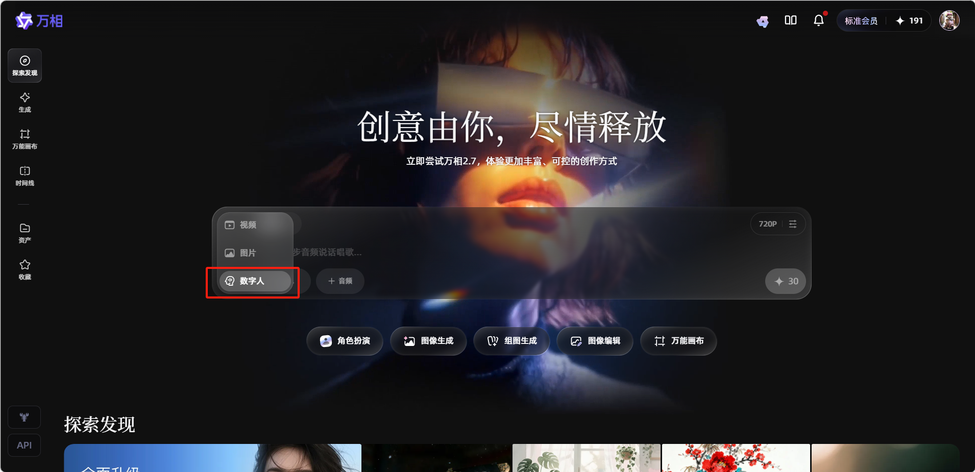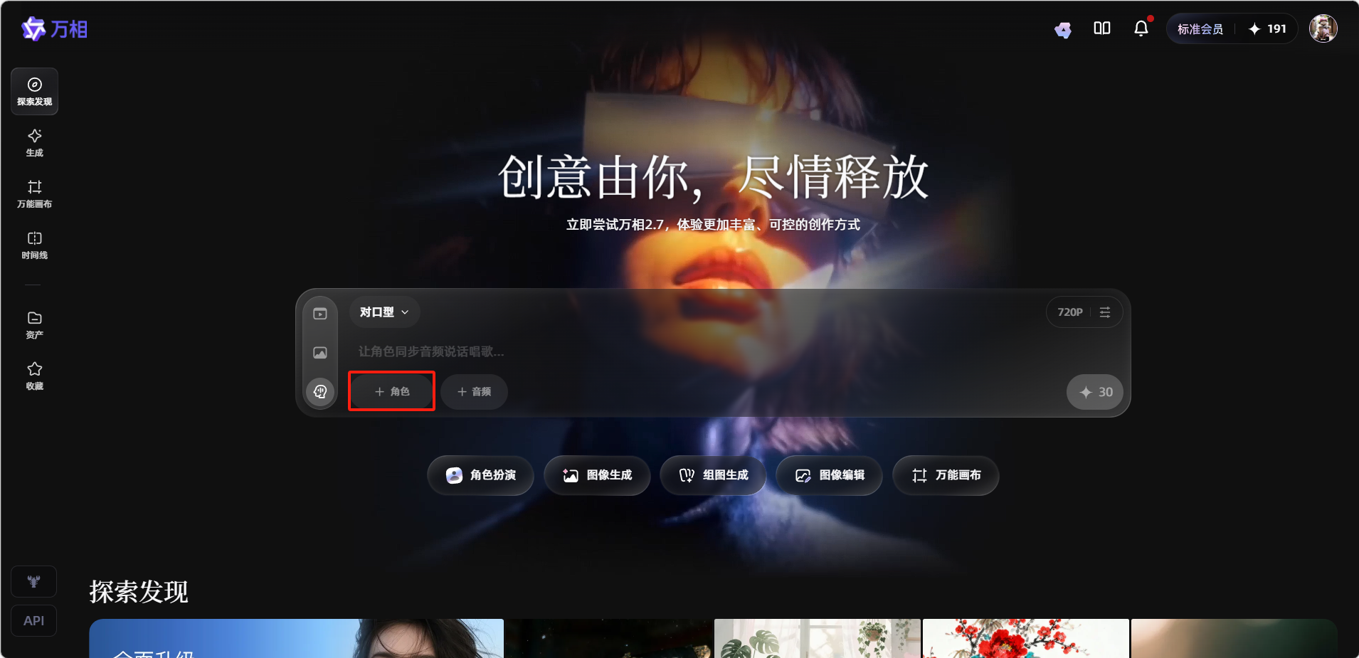 点击「+ 角色」,从资产库选择或上传要驱动的角色图片。