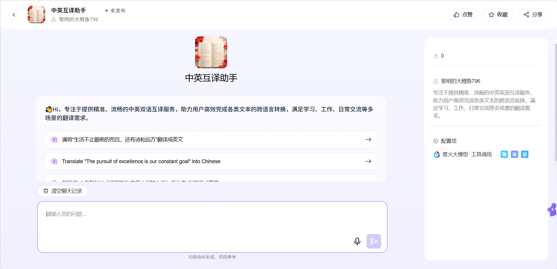 创建完成后即可与创建好的智能体对话。
