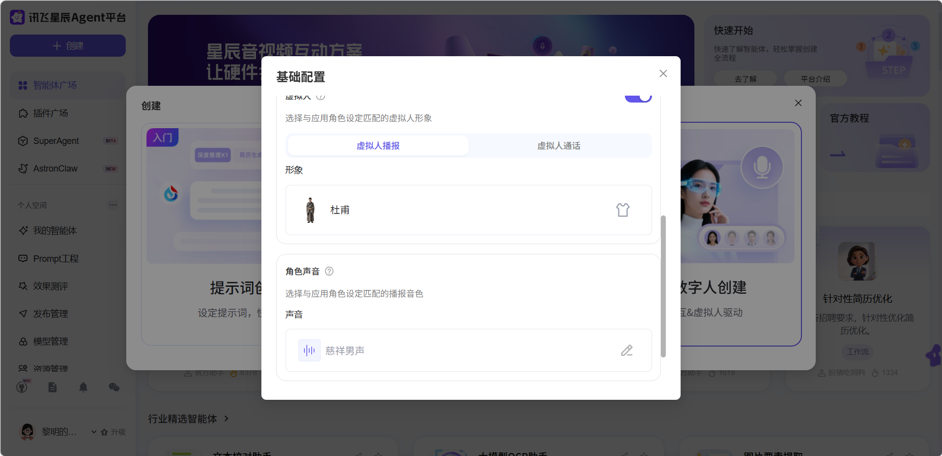 设置数字人的描述、声音和形象。
