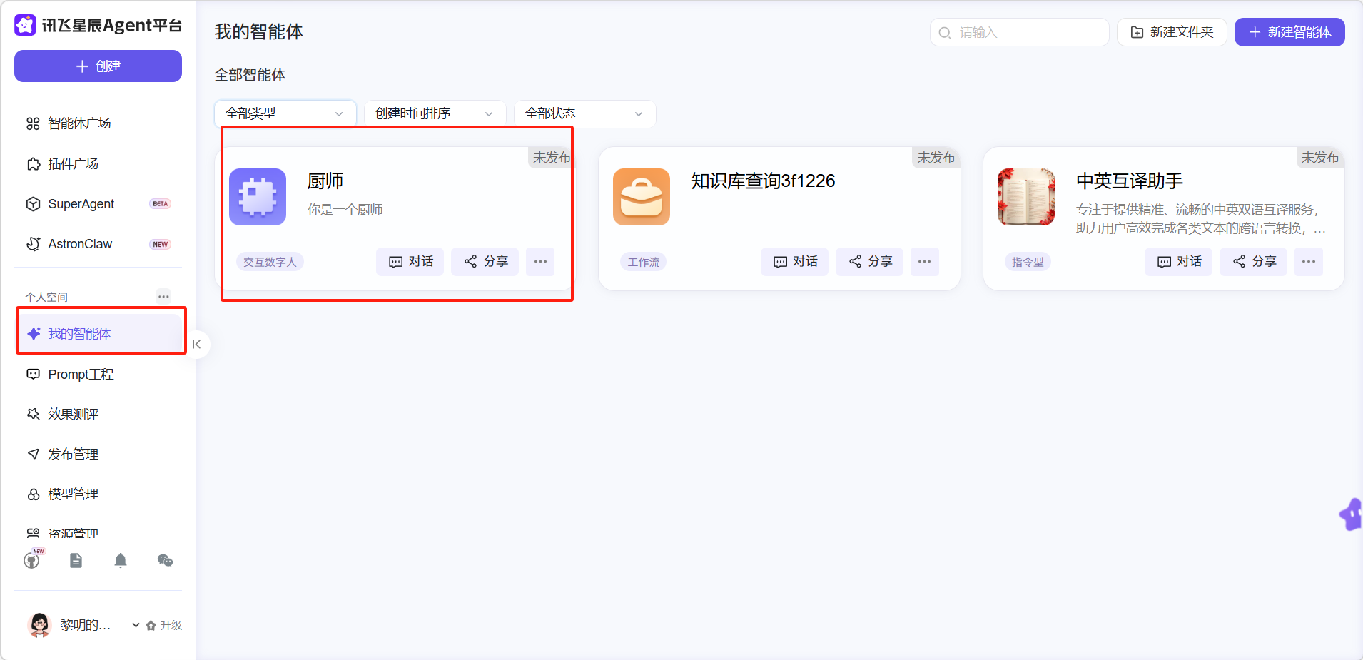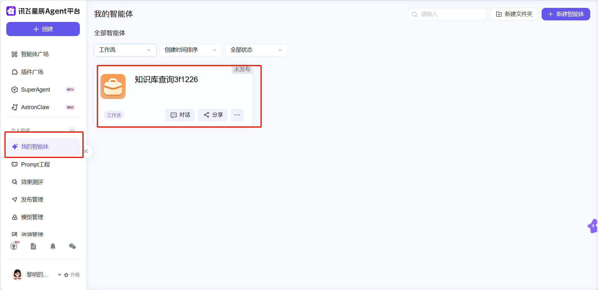 创建好的工作流可以在「我的智能体」中找到。