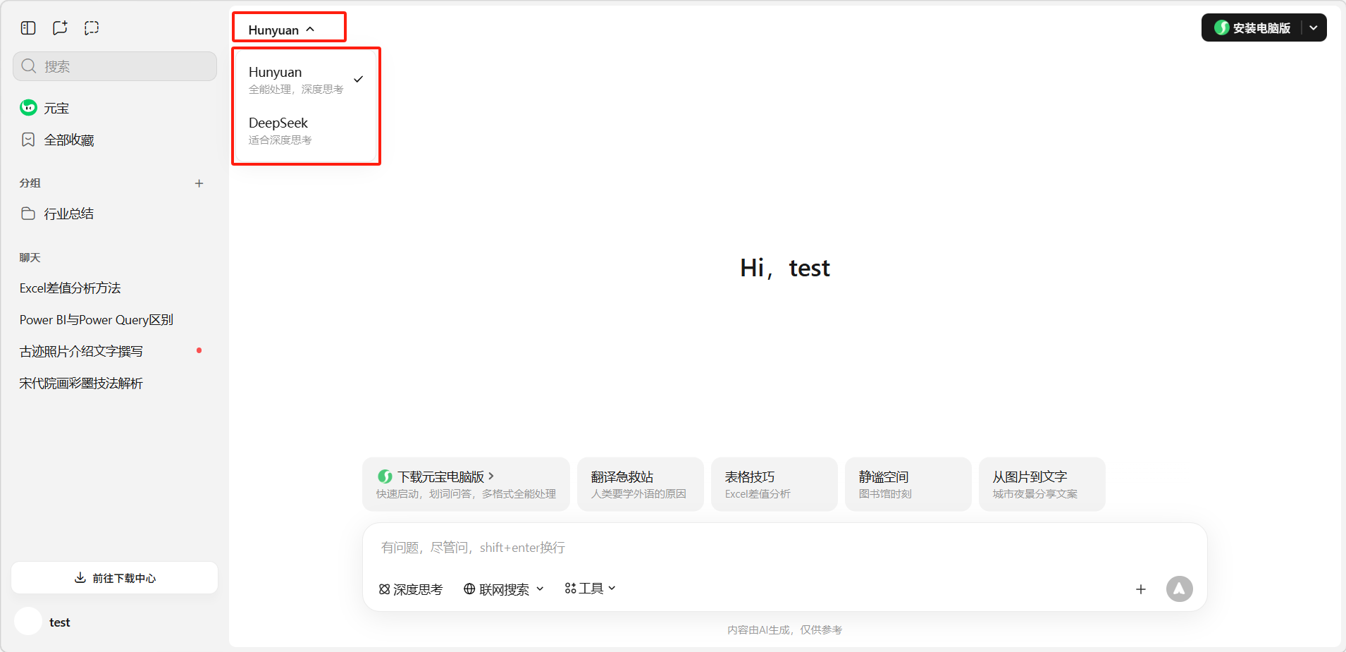 :选择 Hunyuan(混元),语言风格更口语化、自然